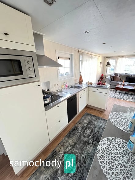 - KUCHNIA: szafki do przechowywania, zlew jednokomorowy z ociekaczem , płyta indukcyjna, okap, lodówka w zabudowie, zmywarka, mikrofalówka, trzy taborety