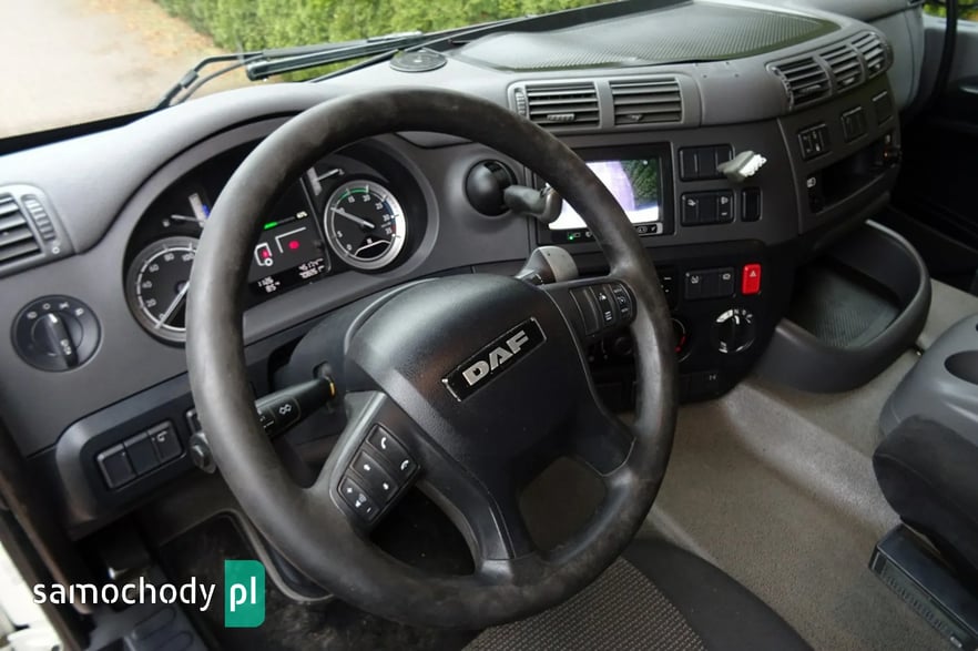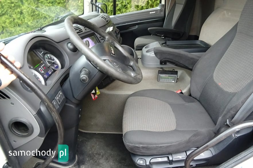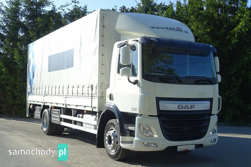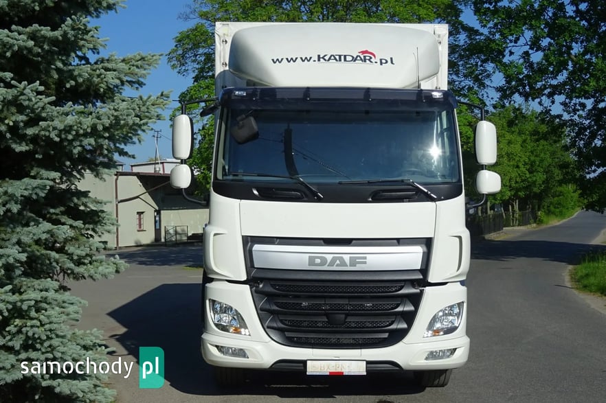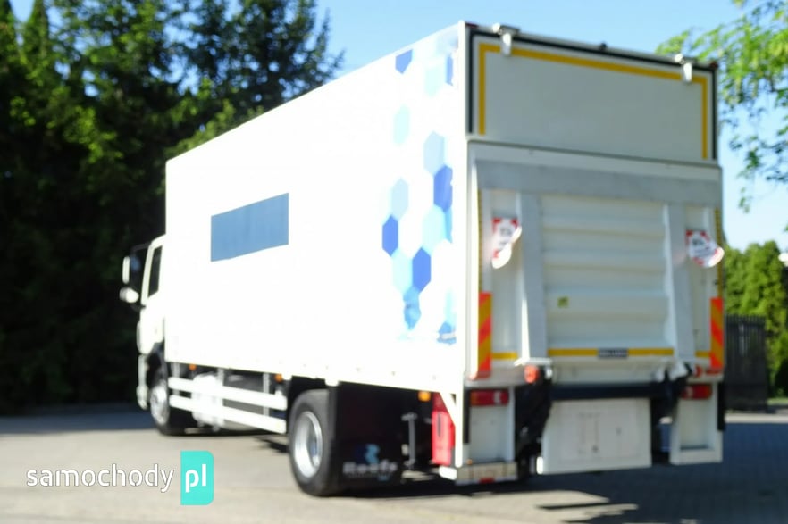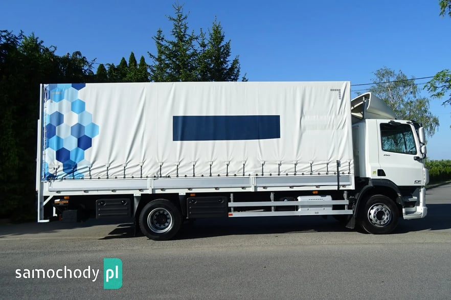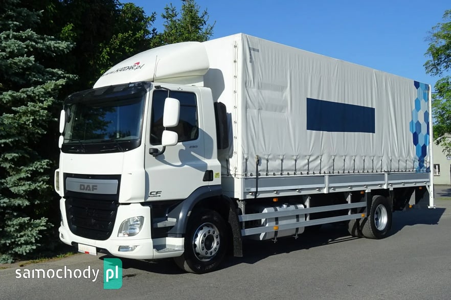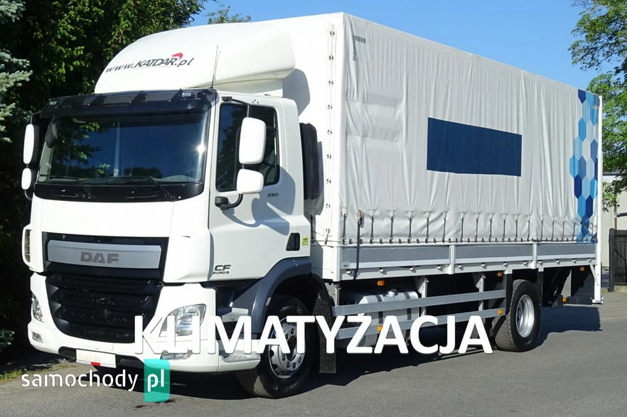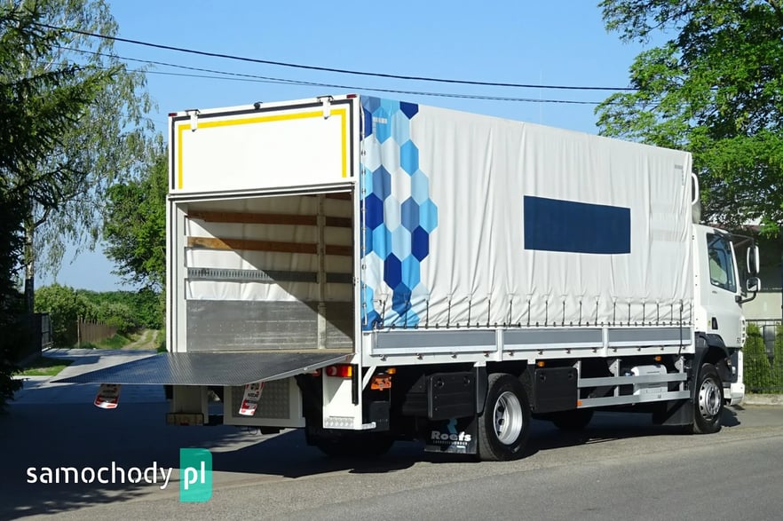 Daf CF 250 Euro 6, Rok produkcji 05.2015 ,skrzynia automat,  przebieg 706 tys.km udokumentowany !!!!, DMC 19000 kg , Ładowność 10080 kg , zabudowa skrzynia burto-firank a, burty aluminiowe, o wymiarach 7.54 x 2.49 x 2.53 wysokość zamykana windą aluminiową Dhollandia o udźwigu 2 tony, podłoga mocna z desek, zamonwowana w kabinie waga elektroniczna na ciężarówce podająca masę na osie i koła !,  opony przód 60% tył 70% , , tył na 4 poduszkach, zbiornik paliwa aluminiowy , podgrzewany fotel, Tempomat, Klimatyzacja, kierownica wielofunkcyjna, hamulec silnikowy, redio , blenda słoneczna , elektryczne szyby , halogeny,  spojler na dachu, podgrzewane i elektrycznie sterowane lusterka , szyberdach  , hamulec silnikowy, radio CD, Sprowadzony.
