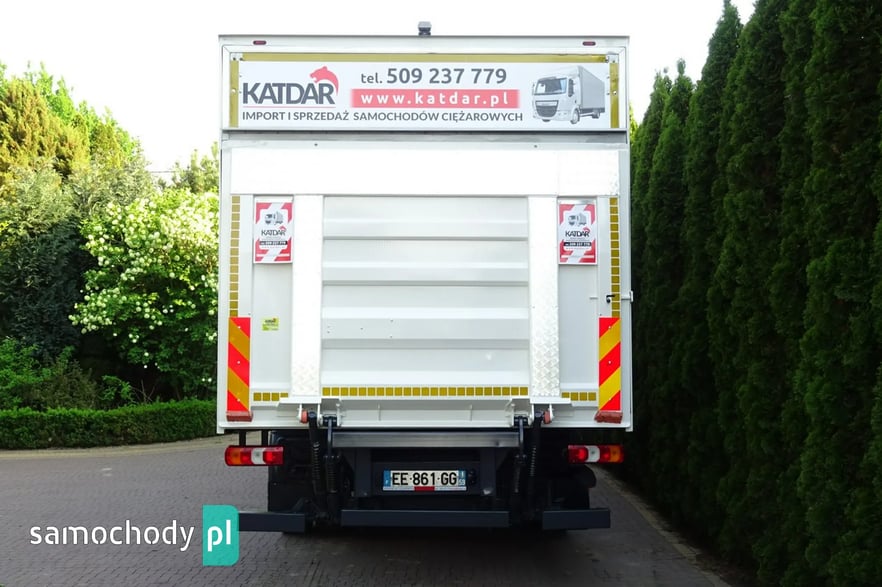 Daf LF 180 Euro 6, rok produkcji 03.2017, przebieg Tylko 333 tys km Udokumentowany pełną książką serwisową !!, skrzynia biegów automat, DMC 11990 kg , ładowność 5250 kg,, Zabudowa kontener o wymiarach 7.50 x 2.49 x 2.50 zamykany dużą windą 2 tony marki Dhollandia drzwi z boku kontenera, tempomat, opony przód 70% tył 70%,tył na poduszkach, owiewka na dachu, klimatyzacja , tempomat, centralny zamek, hamulec górski , elektryczne szyby , podgrzewane i elektrycznie sterowane lusterka, CD radio sprowadzony .