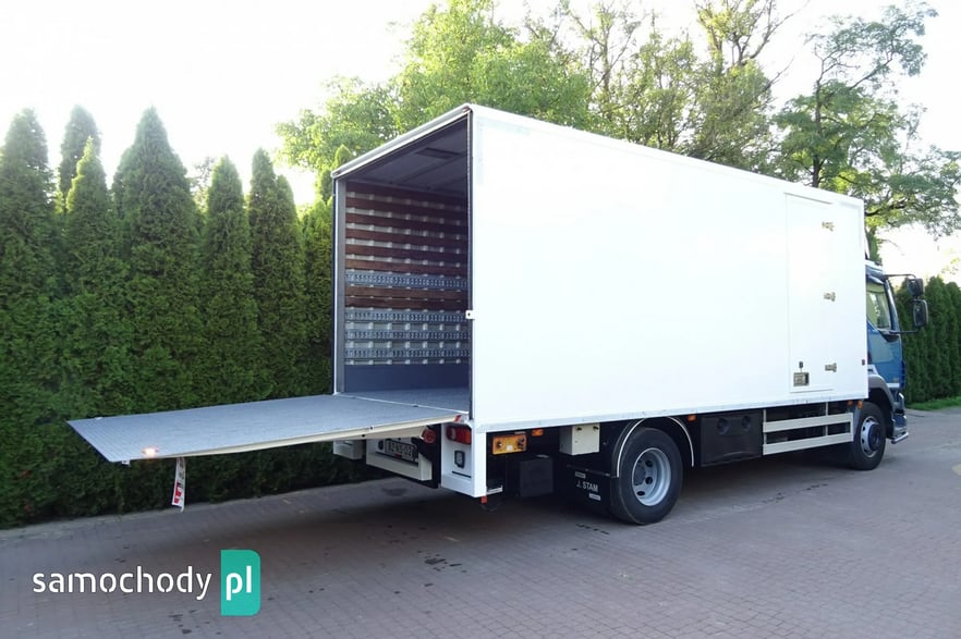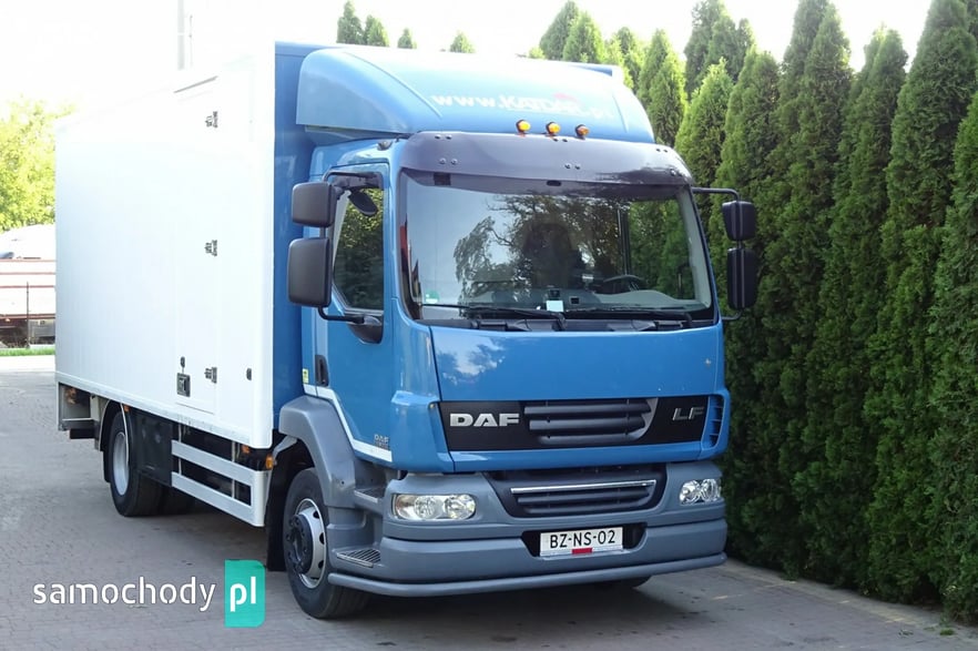 Daf LF 55.220 Euro 5, rok produkcji 10.2011, przebieg Tylko 491 tys km Udokumentowany !!, skrzynia biegów automat, DMC 11990 kg , ładowność 4500 kg,, Zabudowa kontener o wymiarach 5.85 x 2.49 x 2.25 zamykany dużą windą 2 tony marki Dhollandia , Kontener aluminiowy z ryflowaną mocną podłogą, drzwi z boku kontenera, tempomat, opony przód 80% tył 90%,tył na poduszkach, owiewka na dachu, centralny zamek, hamulec górski , elektryczne szyby , podgrzewane i elektrycznie sterowane lusterka, CD radio sprowadzony .