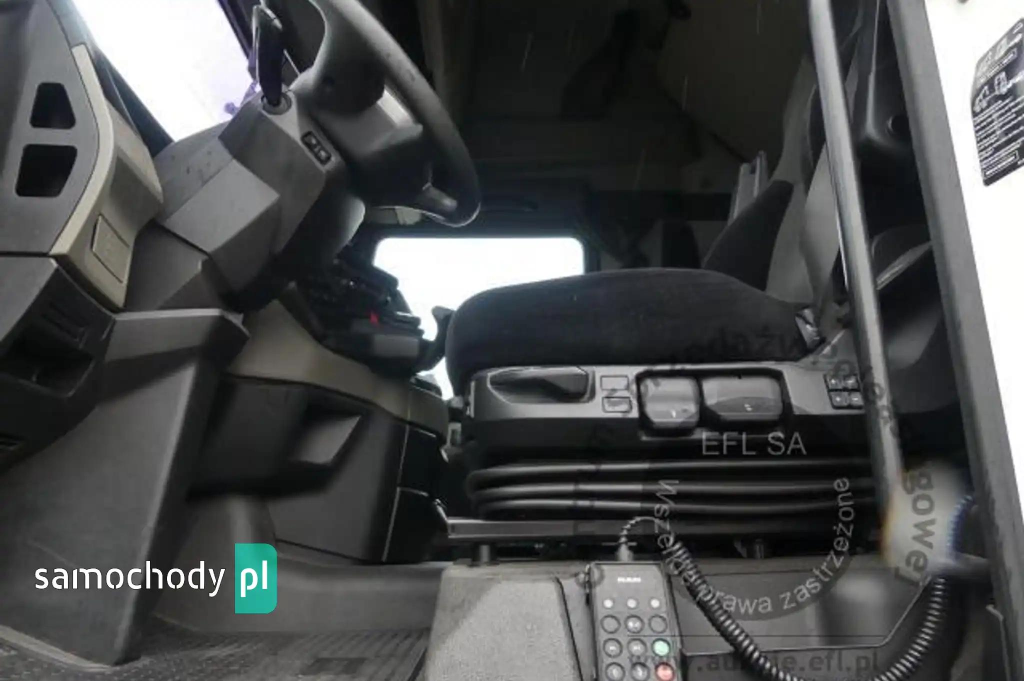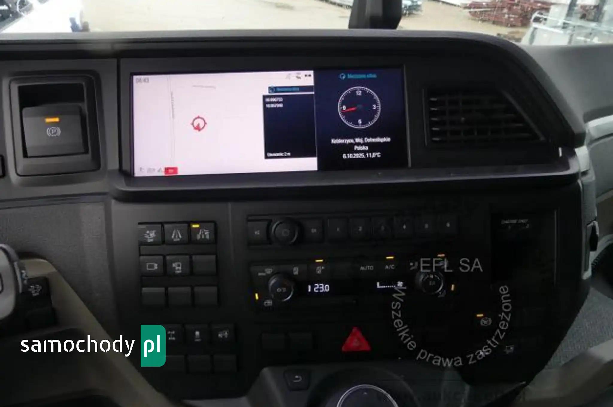 ABS, Automatyczna skrzynia biegów, Blokada tylnego mechanizmu różnicowego, ESP (układ stabilizacji toru jazdy), Immobilizer, Kierownica wielofunkcyjna, Klimatyzacja (automatyczna), Komputer pokładowy, Lusterka boczne sterowane elektrycznie, Nawigacja, Ogrzewanie postojowe, Światła do jazdy dziennej, Światła przeciwmgielne, Tempomat, Wspomaganie układu kierowniczego, Zamek centralny (zdalnie sterowany), Tachograf, lodowka