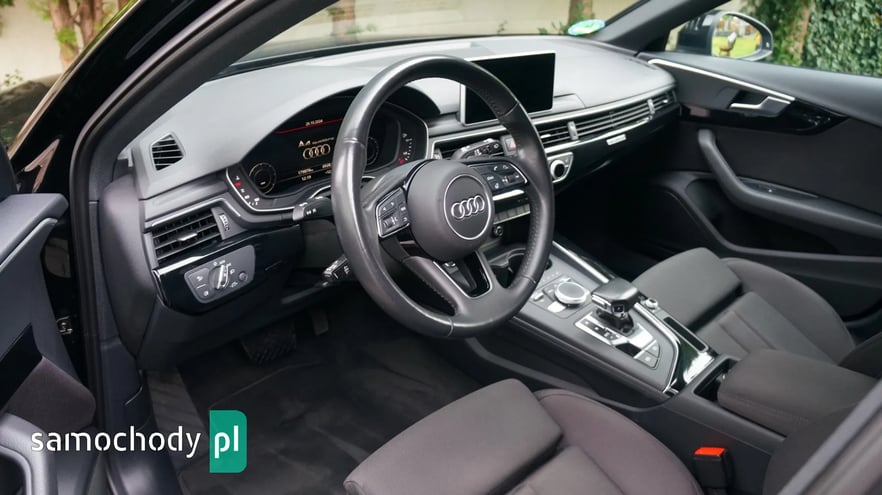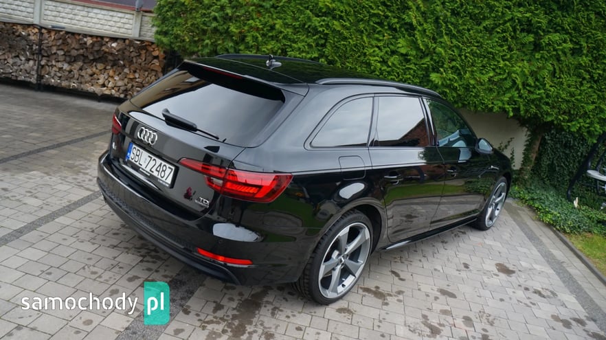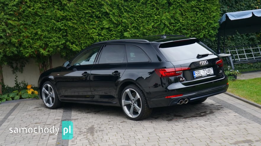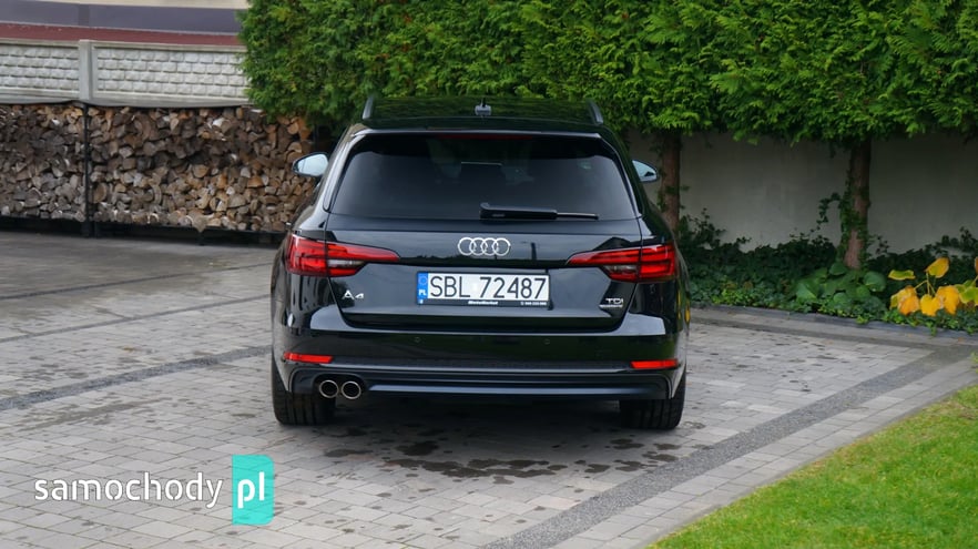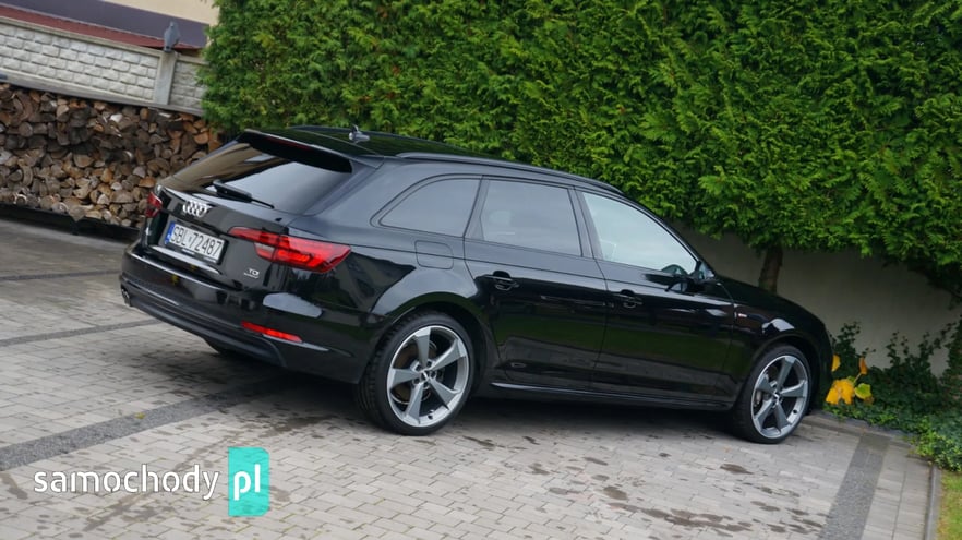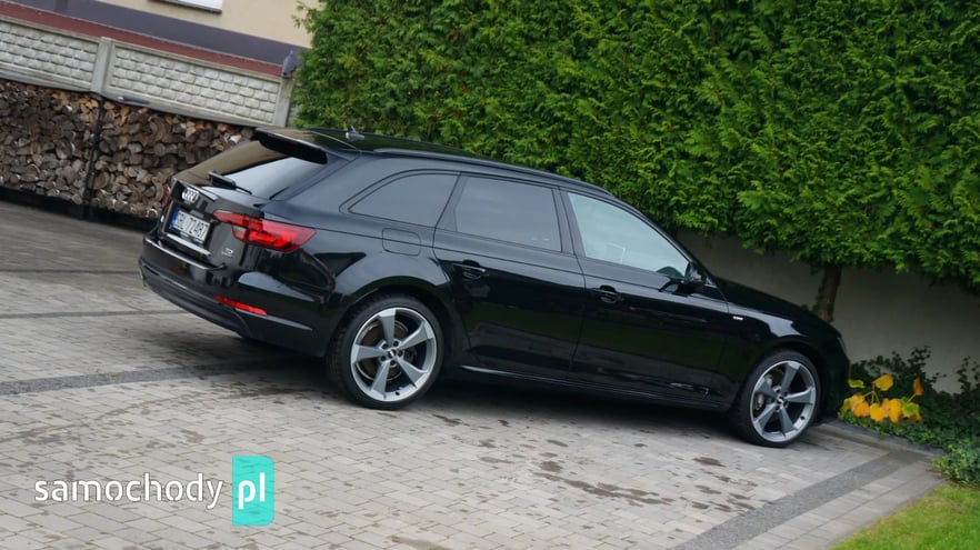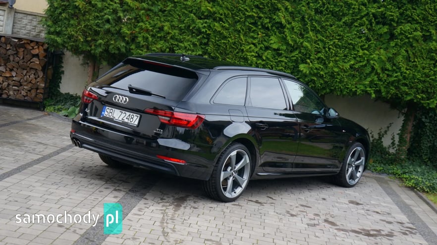 AUDI A4 AVANT 2.0 TDI QUATTRO S-LINE, Kolor: Mythosschwarz metallic, Rok prod: 2018 - I rejestracja/wydanie z salonu 19.06.2018, Moc: 190 KM, Skrzynia biegów automatyczna S-tronic, Napęd QUATTRO na wszystkie koła, Samochód bezwypadkowy, Każdy element w fabrycznym lakierowaniu, Samochód sprowadzony z Niemiec od pierwszego właściciela, AUTO NIE WYMAGA NAJMNIEJSZEGO WKŁADU FINANSOWEGO, PISEMNA GWARANCJA PRZEBIEGU, Cena netto 76 400,- Cena brutto 93 972,- Faktura VAT 23% - możliwość odliczenia pełnego podatku VAT, Możliwy leasing dla firm oraz kredyt dla osób prywatnych, Jesteśmy bezpośrednim importerem samochodów. Do każdego samochodu posiadamy komplet dokumentacji, gwarantujemy legalność pochodzenia oraz przebiegu. Zapraszamy na nasz profil FB: MotoMarket Samochód w bardzo bogatej wersji wyposażenia: - Pakiet wyposażenia S-LINE zewnętrzny, - Pakiet wyposażenia S-LINE black, - Pakiet wyposażenia sport, - Czarna podsufitka, - Reflektory FULL LED MATRIX, - Dynamiczne kierunkowskazy przód + tył, - Fotele sportowe, - Napęd Quattro na wszystkie koła, - Oświetlenie Ambiente qq2, - System bezkluczykowego otwierania i odpalania, - Elektryczna tylna klapa, - Cyfrowy zestaw wskaźników, - Rozpoznawanie znaków drogowych, - Czujniki parkowania przód + tył, - Nawigacja, - Apple Car Play, - Ładowarka indukcyjna, - Klimatyzacja automatyczna 3 strefowa, - Podgrzewana kierownica, - Alufelgi 19' oryginalne AUDI, - Komputer pokładowy, - Podgrzewane siedzenia przód, - Elektryczne szyby, - Elektryczne lusterka, - System ISOFIX, - System Bluetooth, - Gniazdo audio USB, AUX, - Skórzana multifunkcyjna kierownica, - System ESP, ABS, ASR, - Komplet dokumentów, Zapraszam do oglądania oraz na jazdę próbną. tel. 500-222-080 *Powyższa oferta nie stanowi oferty handlowej w rozumieniu art. 66 §1 kodeksu cywilnego oraz innych właściwych przepisów prawnych.