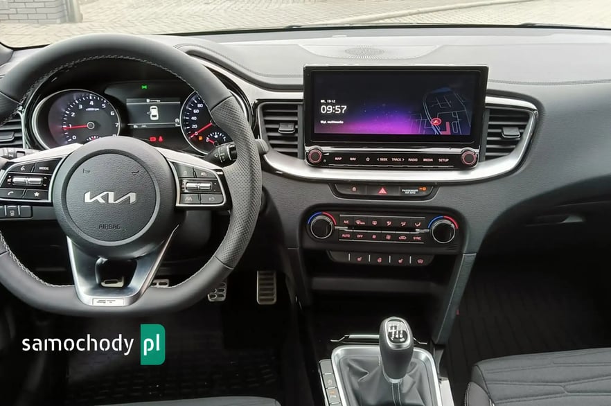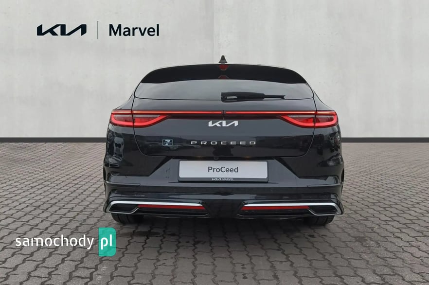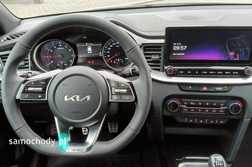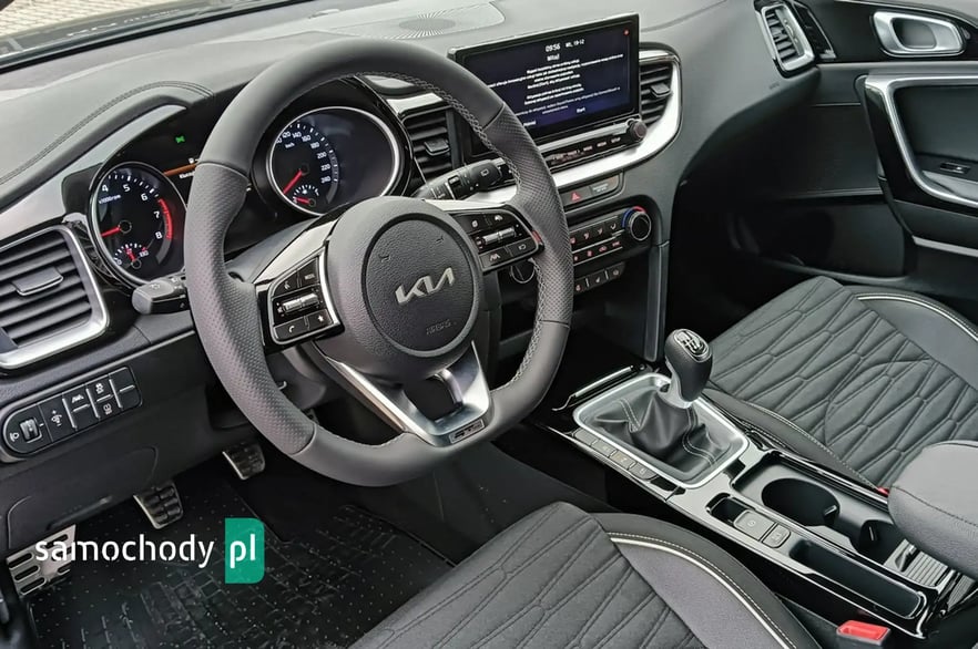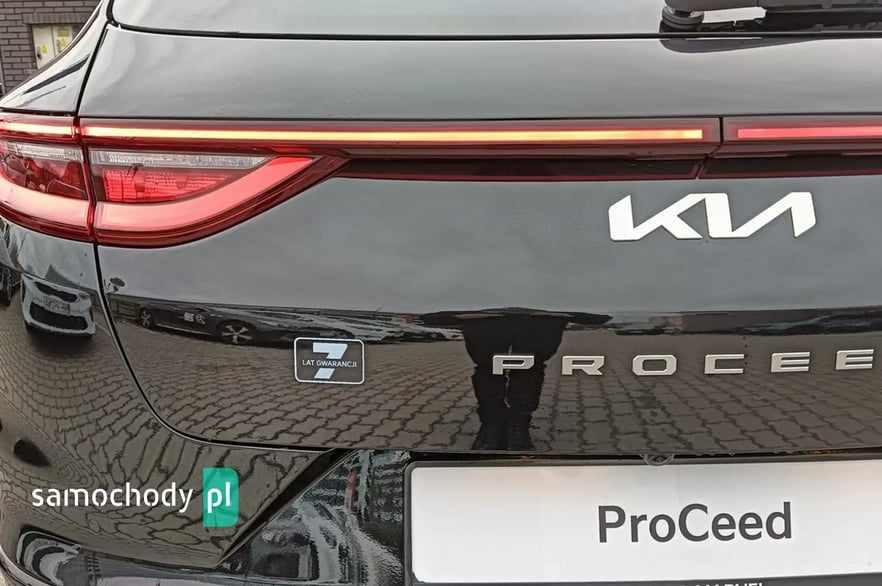 Marka, model: KIA PROCEED Wersja: GT-LINE Rok produkcji: 2023 Pojemność: 1482 cm3 Moc: 160 KM Rodzaj paliwa: BENZYNA Lakier: BLACK PEARL M Samochód dostępny w różnych kolorach na przełomie lutego i marca 2024r. CENA SAMOCHODU- 130400 zł Rabat- 6700 zł Cena Specjalna- 123900 zł* *Cena obowiązuje dla wybranych grup zawodowych, lub przy zakupie w Finansowaniu KIA SMART . O szczegóły zapytaj sprzedawcę. Najniższa cena z przed 30 dni - 130400 zł Wybrane wyposażenie wersji GT- Line: • Tapicerka GT-Line materiałowa z elementami skóry ekologicznej • Zewnętrzne listwy progowe lakierowane na wysoki połysk w kolorze czarnym ze srebrnym akcentem • Lusterka zewnętrzne lakierowane na wysoki połysk w kolorze czarnym • Sportowy wzór kierownicy z przeszyciami w kolorze szarym • Aluminiowe nakładki na pedały oraz wewnętrzne nakładki progowe • Spojler dachowy w kolorze czarnym o wysokim połysku • Światło stop w kształcie trójkąta • Światła przeciwmgielne, mijania oraz drogowe wykonane w technologii LED, kierunkowskazy LED, tylne lampy LED • Światła do jazdy dziennej LED w stylistyce kostek lodu • Czarna podsufitka • Navi System - system nawigacji satelitarnej z obsługą w języku polskim, 10.25” kolorowy ekran dotykowy LCD, 7 letni plan darmowej aktualizacji map, tuner radia cyfrowego DAB • Kia Connect – zestaw usług cyfrowych • 18” felgi aluminiowe, opony Michelin Pilot Sport 4 w rozmiarze 225/40/R18 • ESC - System stabilizacji toru jazdy, HAC - System wspomagający pokonywanie podjazdów, ABS - System zapobiegający blokowaniu się kół • podczas hamowania • Forward Collision Avoidance Assist - system autonomicznego hamowania z funkcją wykrywania pojazdów i pieszych • Driver Attention Warning - system ostrzegania o zmęczeniu kierowcy oraz inforumujący o ruszaniu poprzedzającego pojazdu • Lane Keeping Assist - asystent utrzymania pasa ruchu • Lane Following Assist – asystent jazdy utrzymujący pojazd pośrodku pasa ruchu • High Beam Assist - funkcja automatycznego przełączania pomiędzy światłami drogowymi i mijania • Światła do jazdy dziennej wykonane w technologii LED, automatycznie włączane światła mijania z czujnikiem zmierzchu • Czujniki parkowania z tyłu • Przednie lampy przeciwmgielne wykonane w technologii LED • Tylne lampy wykonane w technologii LED z funkcją świateł do jazdy dziennej • Światła mijania oraz drogowe wykonane w technologii LED • Klimatyzacja automatyczna, dwustrefowa z wyświetlaczami w pokrętłach oraz funkcją automatycznego odparowywania przedniej szyby • Kamera cofania z dynamicznymi liniami ułatwiającymi parkowanie • Kolorowy wyświetlacz LCD komputera pokładowego o przekątnej 4.2”, regulacja podświetlenia zegarów • Pakiet zimowy: podgrzewane przednie fotele z możliwością stopniowania, podgrzewana kierownica, podgrzewana szyba przednia Numer oferty: AKL17X9C8 i580084642i