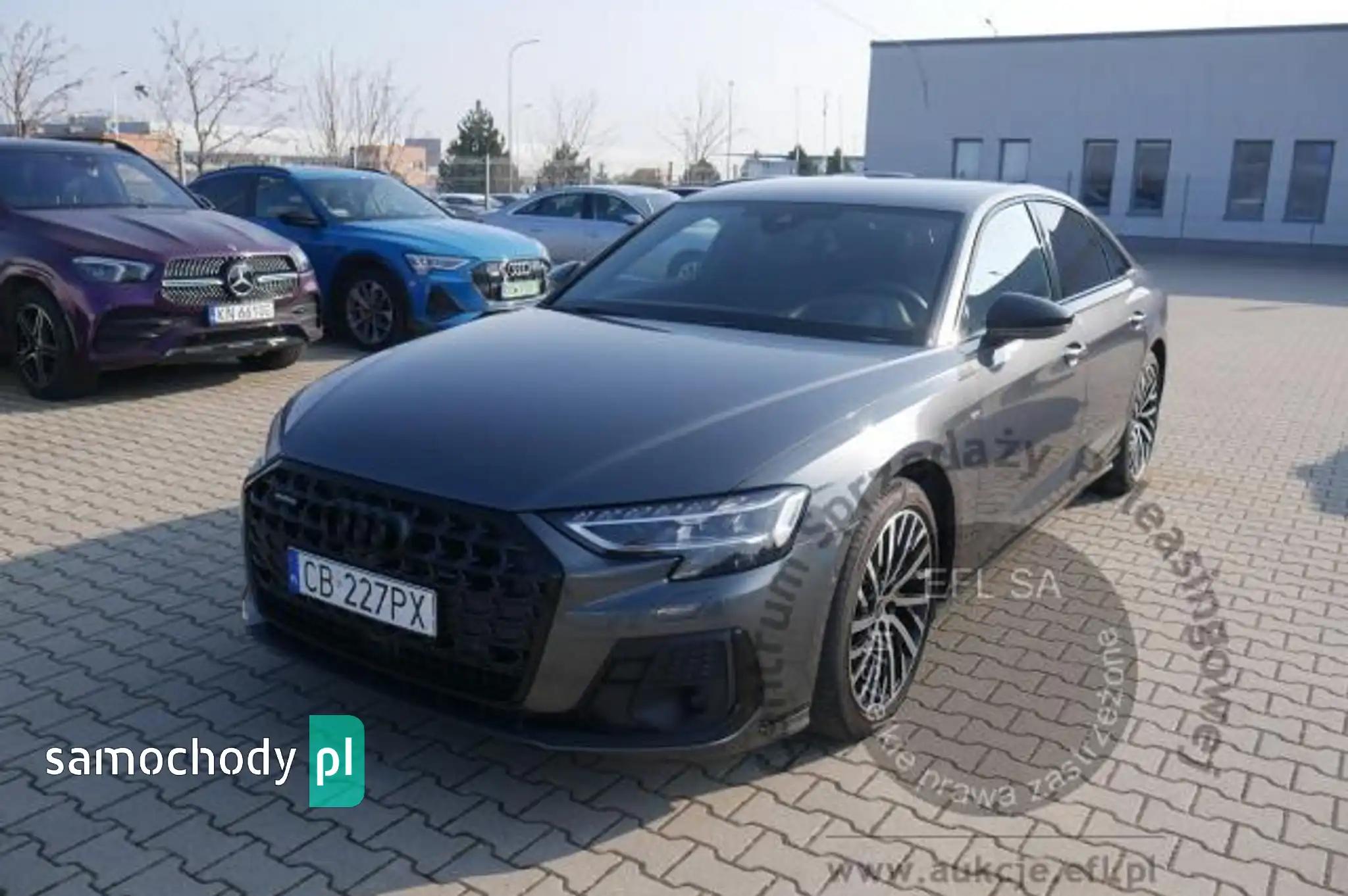 Fotele przednie sterowane elektrycznie z pamięcią ustawień i funkcją masażu.Fotele przednie z logo S-Line.Zawieszenie pneumatyczne.System kamer 360 stopni.Adaptacyjny asystent jazdy.Tempomat aktywny.Asystent parkowania.HUD.Ostrzeżenie o prędkości.Ostrzeżenie o odległości.Nagłośnienie Bang Olufsen.Klimatyzacja automatyczna 4-ro strefowa. Reflektory LED. Audi Pre Sense.Ostrzeżenie o zmianie pasa ruchu.Ostrzeżenie o zmęczeniu. Boczne tylne poduszki bezpieczeńśtwa. Elementy z logo S-Line. Pakiet czerń.