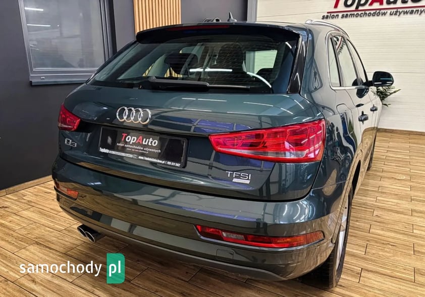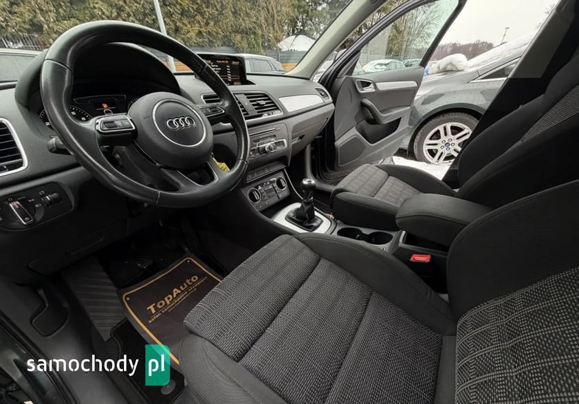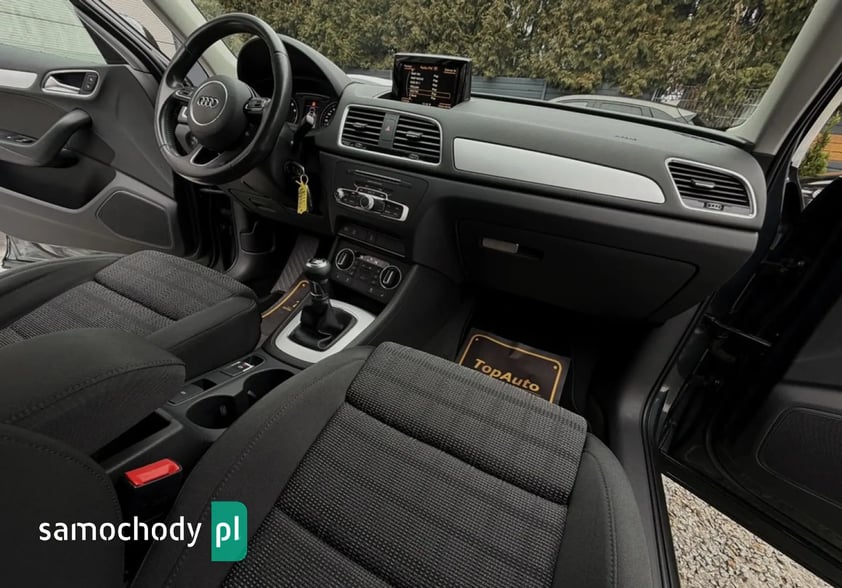 DO ZAOFEROWANIA BARDZO ŁADNA, ZADBANA AUDI Q3. WYPOSAŻONA W SILNIK BENZYNOWY 1.4 TFSI O MOCY 150KM, POŁĄCZONY Z MANUALNĄ SKRZYNIĄ BIEGÓW. PRZEBIEG WYNOSZĄCY 118.000KM, GWARANTOWANY, POTWIERDZONY ODPOWIEDNIMI DOKUMENTAMI. DODATKOWO WYDRUKI Z BADAŃ TECHNICZNYCH. WNĘTRZE ZACHOWANE W ŚWIETNYM STANIE. AUDI W 100% BEZWYPADKOWA - POSIADAMY ZDJĘCIA WYKONANE W MOMENCIE ZAKUPU - DO WGLĄDU W NASZYM SALONIE. W ŚWIETNEJ KONDYCJI TECHNICZNEJ JAK I WIZUALNEJ, TAPICERKA ORAZ LAKIER W BARDZO DOBRYM STANIE.