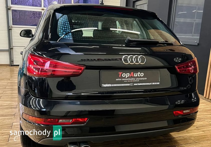 DO ZAOFEROWANIA BARDZO ŁADNA, ZADBANA AUDI Q3. WYPOSAŻONA W SILNIK DIESLA 2.0 TDI O MOCY 150KM, POŁĄCZONY Z AUTOMATYCZNĄ SKRZYNIĄ BIEGÓW S-TRONIC. PRZEBIEG WYNOSZĄCY 118.000KM, GWARANTOWANY, POTWIERDZONY ODPOWIEDNIMI DOKUMENTAMI. DODATKOWO WYDRUKI Z BADAŃ TECHNICZNYCH. WNĘTRZE ZACHOWANE W ŚWIETNYM STANIE. POSIADAMY ZDJĘCIA WYKONANE W MOMENCIE ZAKUPU - DO WGLĄDU W NASZYM SALONIE. W ŚWIETNEJ KONDYCJI TECHNICZNEJ JAK I WIZUALNEJ, TAPICERKA ORAZ LAKIER W BARDZO DOBRYM STANIE. Q3 ZOSTAŁA ODKUPIONA PRZEZ NASZĄ FIRMĘ Z SALONU KIA - POZOSTAWIONA W ROZLICZENIU ZA AUTO NOWE.