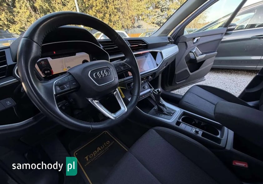 DO ZAOFEROWANIA BARDZO ŁADNA, ZADBANA AUDI Q3. WYPOSAŻONA W SILNIK BENZYNOWY 1.5 TFSI O MOCY 150KM, POŁĄCZONY Z AUTOMATYCZNĄ SKRZYNIĄ BIEGÓW S-TRONIC. PRZEBIEG 112.000KM, GWARANTOWANY, POTWIERDZONY ODPOWIEDNIMI DOKUMENTAMI. DODATKOWO WYDRUKI Z BADAŃ TECHNICZNYCH. WNĘTRZE ZACHOWANE W ŚWIETNYM STANIE. AUDI W 100% BEZWYPADKOWA - POSIADAMY ZDJĘCIA WYKONANE W MOMENCIE ZAKUPU - DO WGLĄDU W NASZYM SALONIE. W ŚWIETNEJ KONDYCJI TECHNICZNEJ JAK I WIZUALNEJ, TAPICERKA ORAZ LAKIER W BARDZO DOBRYM STANIE.