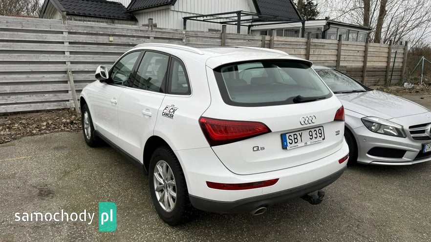 Witam państwa w auto komisie Osowa firmą nasz ma 30 letnie doświadczenie w dziedzinie motoryzacji . Prezentujemy państwu piękne bezwypadkowe Audi q5 z rocznika 2013 XI modelowo 2014 wersja poliftingowa silnik 2.0tdi o mocy 177KM przebieg tylko 162 tys km z pełną historią serwisowa sprowadziliśmy auto ze Szwecji jest w stanie perfekcyjny mogę powiedzieć jak nowym nie wymaga żadnego w kładu finansowego bardzo bogate wyposażenie takie jak :