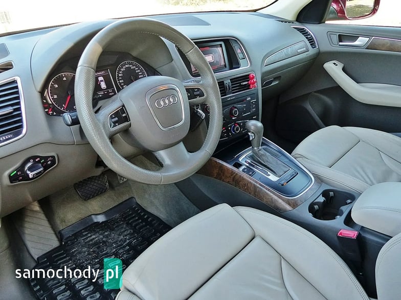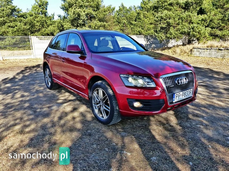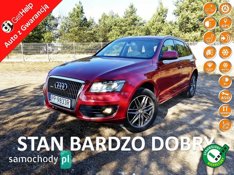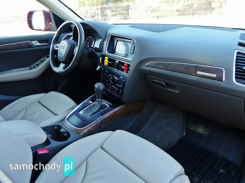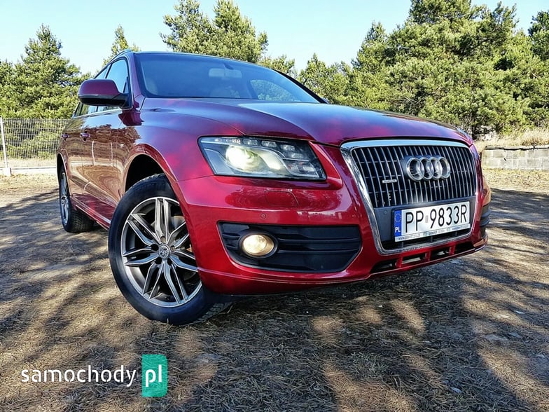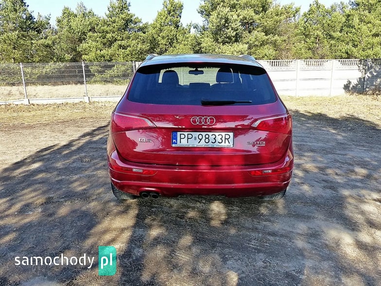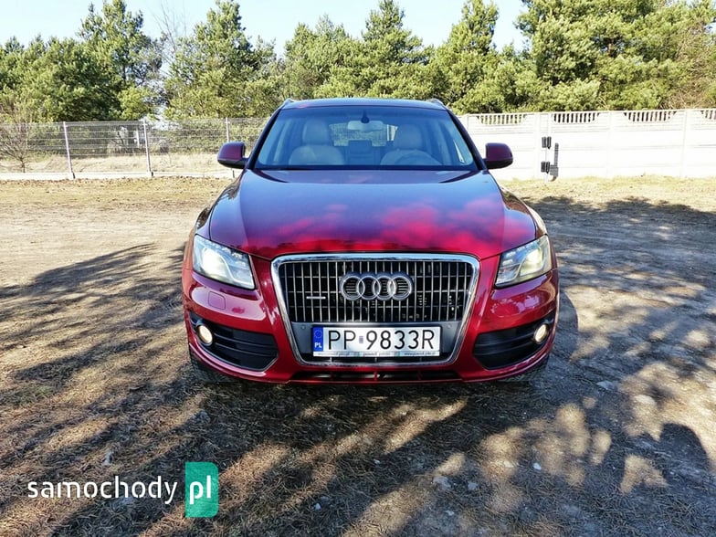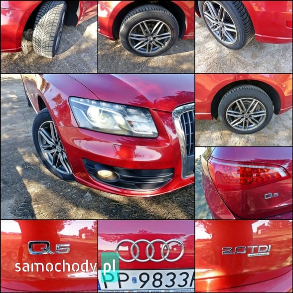 Mam Państwu do zaoferowania Audi Q5 2.0 TDI w bogatej wersji wyposażenia, ślicznym bordowym kolorze i wysokoprężnym silniku o mocy 170 koni mechanicznych. Auto jest wyposażone w jednostkę napędową która zasilana jest wtryskiem common rail - to nowa generacja silników 2.0, których nie należy się obawiać - są trwałe i mocne. W wersji 170 koni mocy i momentu obrotowego jest zawsze pod dostatkiem, a przy tym spala rozsądne ilości paliwa. Wszystko to sprawia, że jest to bardzo rozsądna propozycja jeśli chodzi o źródło napędu. Silnik w stanie bardzo dobrym, na bieżąco serwisowany, olej wymieniano co 15 tys. km. Godzi rewelacyjne osiągi i niskie spalanie. Auto wyposażono jest w napęd Quattro – czyli napęd na 4 koła, który zwłaszcza zimą jest nie zastąpiony, poza tym poprawia trakcję na suchym, co przy dużej mocy i momencie silnika 2.0 jest nie do przecenienia, a zdolności do jazdy w lekkim terenie też są na bardzo przyzwoitym poziomie. Auto z automatyczną skrzynią biegów - tiptronic. Działa bez zarzutu, nie przeciąga, płynnie zmienia biegi.