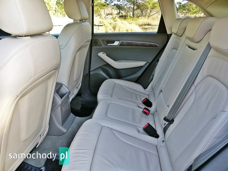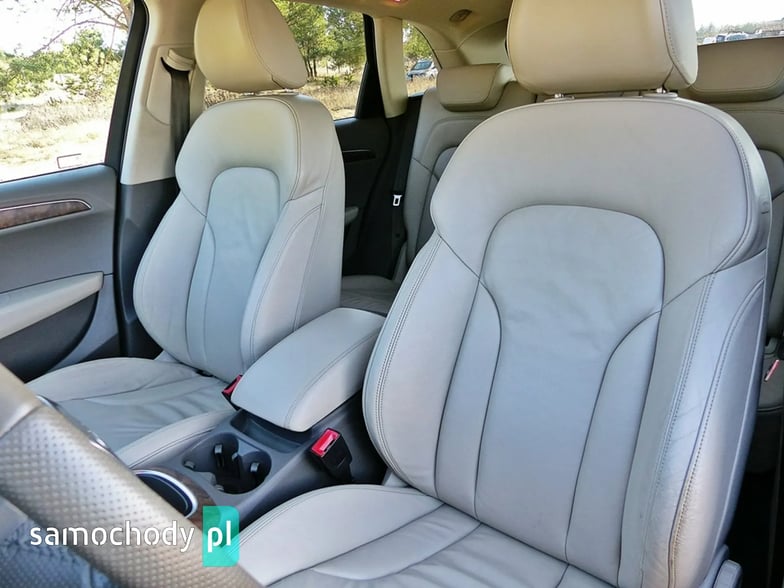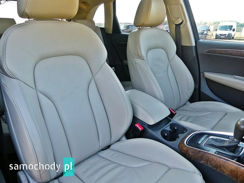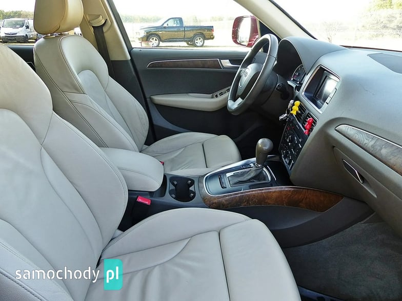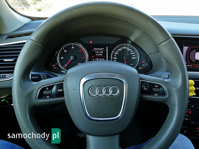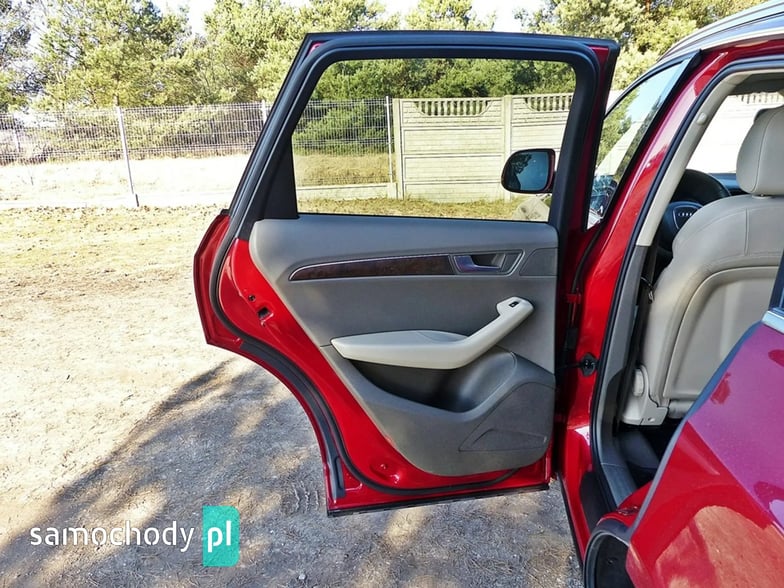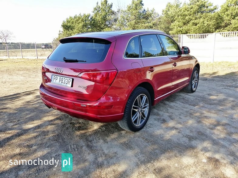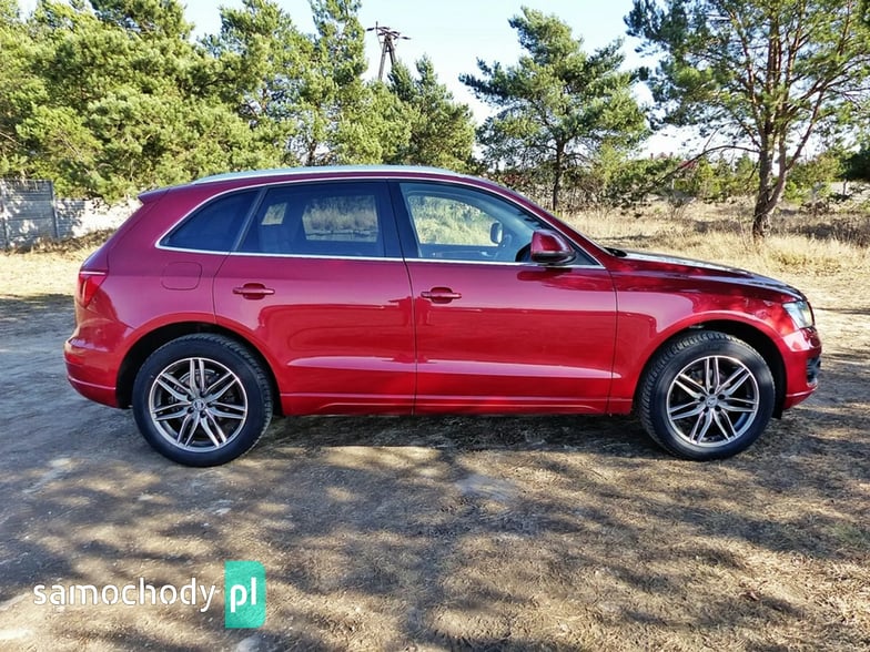 Mam Państwu do zaoferowania Audi Q5 2.0 TDI w bogatej wersji wyposażenia, ślicznym bordowym kolorze i wysokoprężnym silniku o mocy 170 koni mechanicznych. Auto jest wyposażone w jednostkę napędową która zasilana jest wtryskiem common rail - to nowa generacja silników 2.0, których nie należy się obawiać - są trwałe i mocne. W wersji 170 koni mocy i momentu obrotowego jest zawsze pod dostatkiem, a przy tym spala rozsądne ilości paliwa. Wszystko to sprawia, że jest to bardzo rozsądna propozycja jeśli chodzi o źródło napędu. Silnik w stanie bardzo dobrym, na bieżąco serwisowany, olej wymieniano co 15 tys. km. Godzi rewelacyjne osiągi i niskie spalanie. Auto wyposażono jest w napęd Quattro – czyli napęd na 4 koła, który zwłaszcza zimą jest nie zastąpiony, poza tym poprawia trakcję na suchym, co przy dużej mocy i momencie silnika 2.0 jest nie do przecenienia, a zdolności do jazdy w lekkim terenie też są na bardzo przyzwoitym poziomie. Auto z automatyczną skrzynią biegów - tiptronic. Działa bez zarzutu, nie przeciąga, płynnie zmienia biegi.