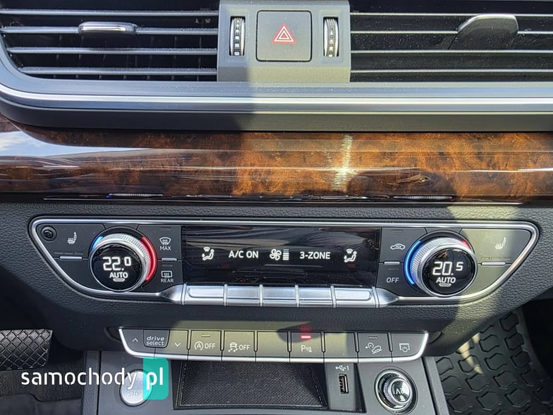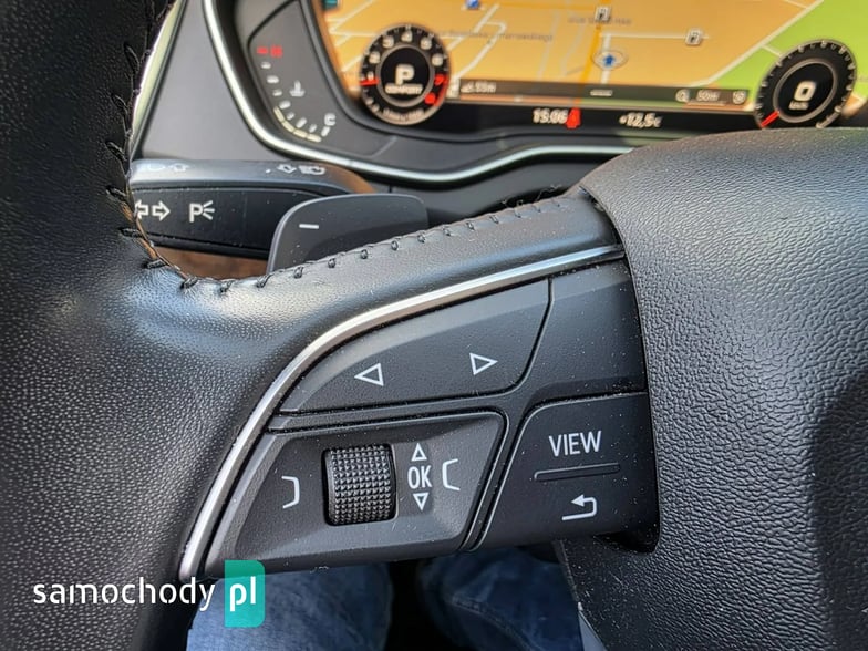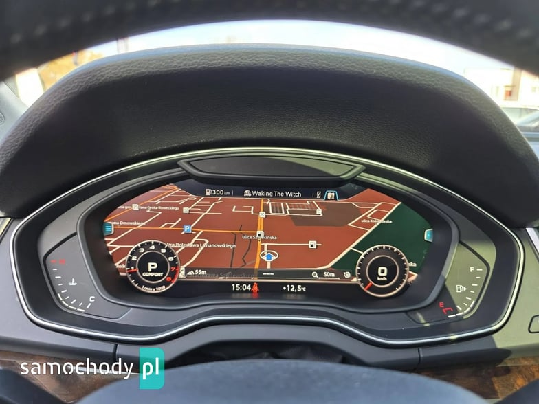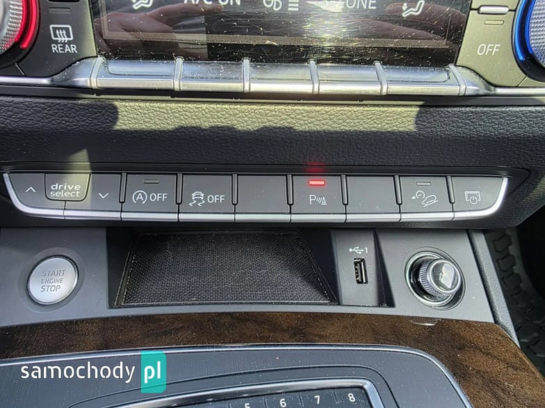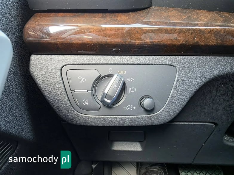 Elektryczne szyby przód i tył, elektryczne lusterka, wspomaganie kierownicy, wielofunkcyjna skórzana kierownica, wirtualny kokpit, komputer pokładowy, tempomat, ogranicznik prędkości, immobiliser, skórzana tapicerka, podgrzewane fotele przednie i tylne, podgrzewana kierownica, radio CD MP3 z AUX i USB, Bluetooth, nawigacja, zmieniarka CD, kamera cofania, menu w języku Polskim, klimatyzacja automatyczna trzystrefowa, centralny zamek z pilotem, klucz zbliżeniowy, automatyczna skrzynia biegów, łopatki do zmiany biegów przy kierownicy, drewniane wykończenie, wbudowany dysk twardy, poduszki powietrzne przednie i boczne, kurtyny powietrzne, ISOFIX, ABS, ESP, kontrola trakcji, napęd 4x4 Quattro, lakier metaliczny, alufelgi, światła do jazdy dziennej LED, reflektory full LED, przyciemniane szyby, relingi dachowe, czujnik parkowania przód i tył, czujnik deszczu, czujnik zmierzchu, elektrycznie otwierana tylna klapa, elektrycznie sterowane fotele przednie, nagłośnienie Bang&Olufsen.