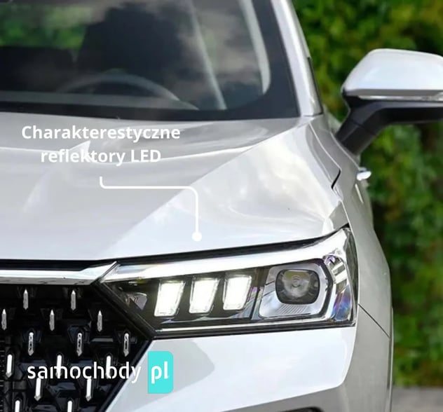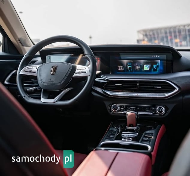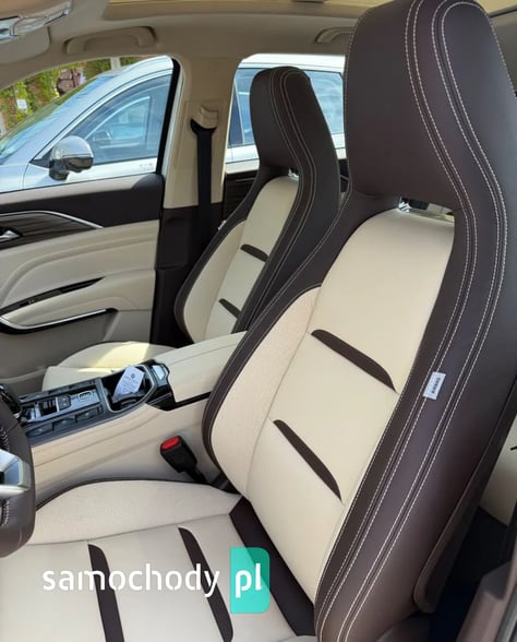 PODWOZIENapęd Przedni Układ zawieszeniaPrzód: Niezależne zawieszenie typu McPhersonTył: Półniezależne zawieszenie z belką skrętną i stabilizatorem bocznymWymiary opon 225/45 R19Koło zapasoweDojazdowe koło zapasowe (T135/90R16)Poduszki powietrzne przednie / boczne /kurtynoweISA/AEB/LDW/FCW/HHC/HDC/ BSD - system monitorowania martwego polaSystem ostrzegajacy o zmęczeniu kierowcyTempomat adaptacyjnyPanoramiczne okno dachowePodgrzewane i elektrycznie składane lusterka boczneTapicerka ze skóry ekologicznejEkran na środkowej konsoli o przekątnej 12,3”Wyświetlacz za kierownicą o przekątnej 8”Czujniki parkowania przednie / tylneKamera cofania / panoramiczny obraz z kamerPodgrzewane fotele przednieElektrycznie regulowany fotel kierowcy / pasażeraJednostrefowa klimatyzacja automatyczna
