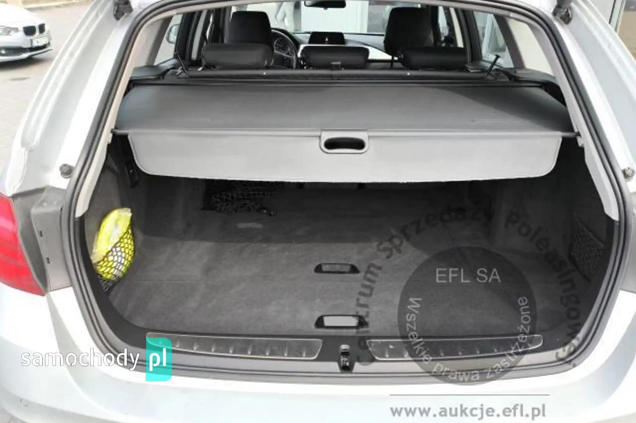 Airbag 6 sztuk: poduszki powietrzne czołowe i boczne dla kierowcyi pasażera, kurtyny powietrzneBagażnik otwierany-zamykany automatycznieCzujnik deszczu z automatyczną kontrolą świateł mijaniaCzujnik kolizjiDodatkowe gniazda 12VDodatkowe schowkiDynamiczne światła stopDywaniki weluroweDzielone i składane oparcie kanapy z tyłuElektroniczna blokada dyferencjałuFelgi aluminiowe 16", V-Spoke 390, z ogumieniemFunkcja Follow-Me-HomeGniazdo AUX-INImmobilizerKierownica skórzanaKierownica wielofunkcyjnaKlimatyzacja automatycznaKolumna kierownicy regulowana mechanicznie w pionie i poziomieKomputer pokładowyLampy tylne w technologii diodowej LEDMocowania do fotelika dziecięcego ISOFIX na tylnych siedzieniachOświetlenie bagażnikaOświetlenie powitalnePakiet serwisowy BMW Service Inclusive 5 lat / 100.000 kmPodłokietnik przedni, przesuwanyPodłokietnik tylnyPrzełącznik właściwości jezdnych z trybem ECO PRORadio BMW ProfessionalReflektory przednie diodoweServotronicSkładane zagłówki tylneSystem alarmowy sterowany pilotemSystem Auto Start StopSzyby atermiczneŚruby do kół zabezpieczające przed kradzieżąŚwiatła przeciwmgielne w technologii LEDTapicerka tkaninowa MoveTeleServicesTempomat z funkcją hamowaniaUkład dynamicznej kontroli stabilności DSC z trybem kontroli trakcji DTCUstawienia Personal Profile z pamięcią ważnych funkcji kontrolnych w kluczykuWskaźnik zmiany biegówWspomaganie układu kierowniczego - elektryczneWyłącznik poduszki powietrznej pasażeraZamek centralnyZestaw Bluetooth z interfejsem USBCzujniki odległości przy parkowaniu (PDC) - przód i tyłLakier metalikLusterko wsteczne przyciemniane automatycznieRelingi dachowe, czarne