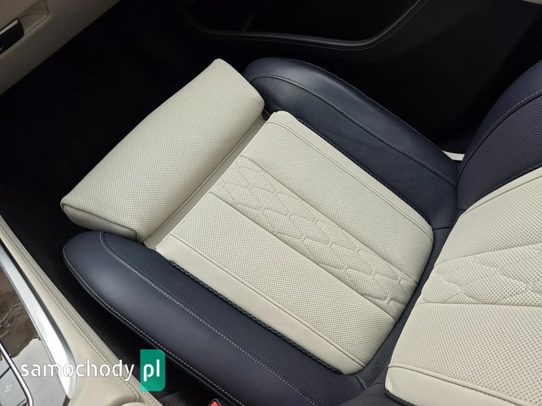 Wnętrze: Tapicerka skórzana Merino w kolorze kości słoniowej, biało-niebieska.