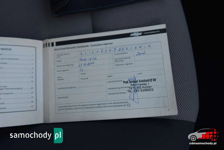 Chevroleta odkupiliśmy bezpośrednio z autoryzowanego salonu w Holandii, gdzie był zostawiony w rozliczeniu za nowy samochód.