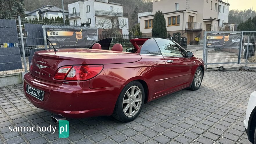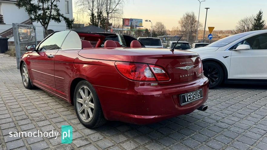 Na sprzedaż wyjątkowy Chrysler Sebring w wersji kabriolet, wyposażony w silnik benzynowy 2.7 V6 o mocy 186 KM oraz automatyczną skrzynię biegów. Samochód wyróżnia się elegancką konfiguracją kolorystyczną – lakier w odcieniu wiśniowego metaliku połączony z czerwonym, skórzanym wnętrzem.