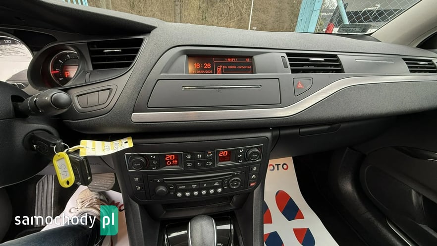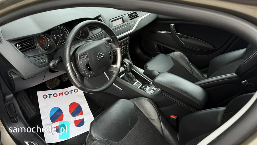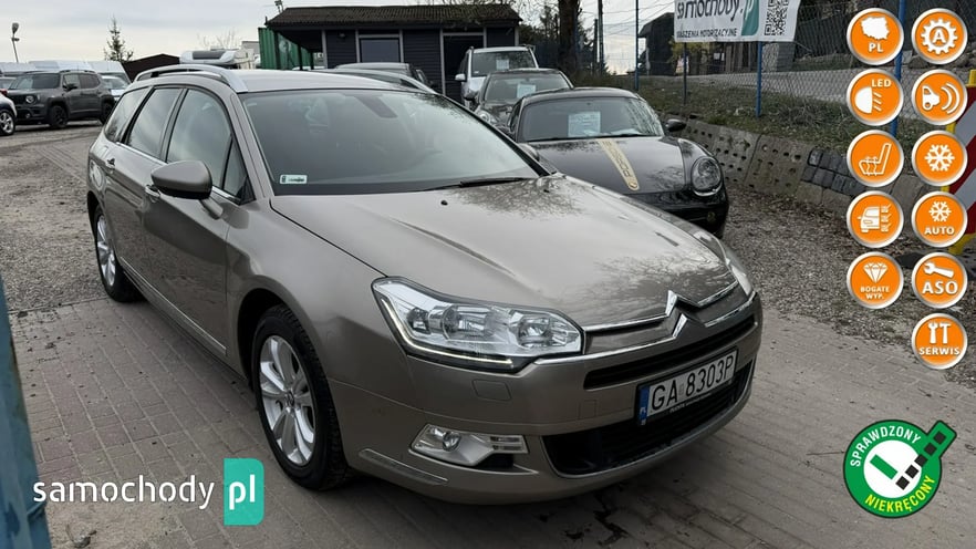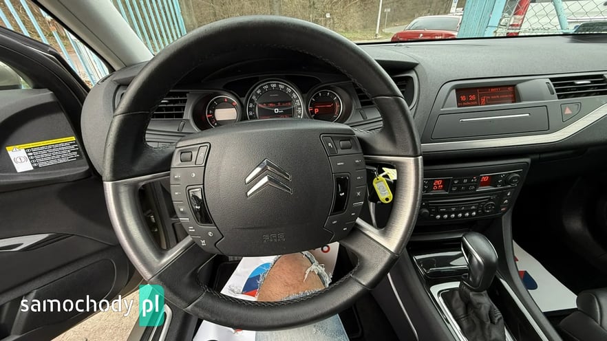 Witam państwa w auto komisie Osowa dziś do zaoferowania posiadamy bardzo ładnego i hosto wyposażonego Citroena C5 Tourer wersja wyposażenia exclusive silnik 1.6 i16 v o mocy 156 KM Citroen posiada automatyczną skrzynię biegów wnętrze uzyskane wzorowo oprócz fotela kierowcy jest małe przetarcie widoczne na filmiku zawieszenie idealne nie puka na bierności wszystko wymieniane na czas tarczę klocki przód i tył świerzbi wymienione na dzień dzisiejszy bez wkładu finasowegon jest bardzo mocno wyposażony między innymi