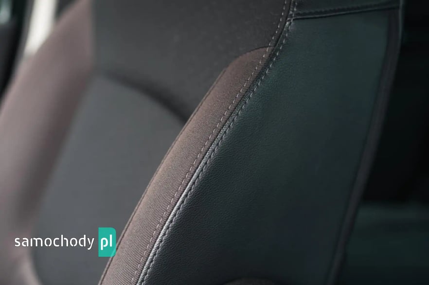 Wnętrze: Brązowo-zielona tapicerka materiałowa