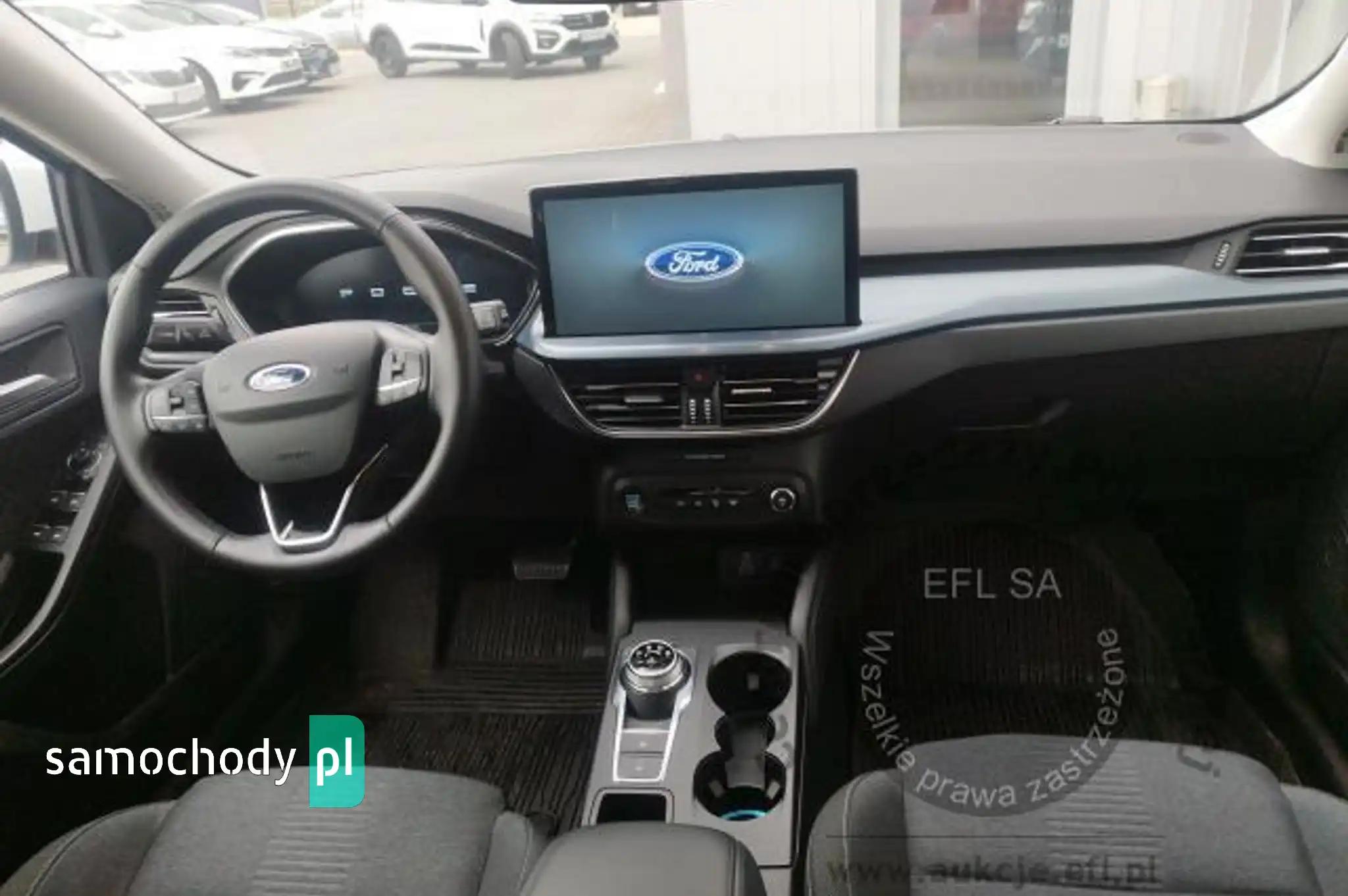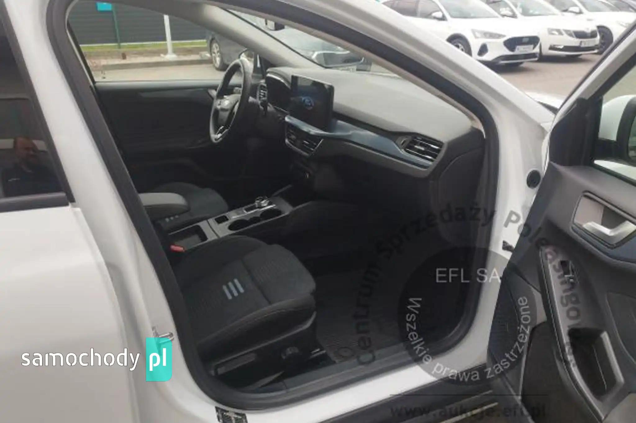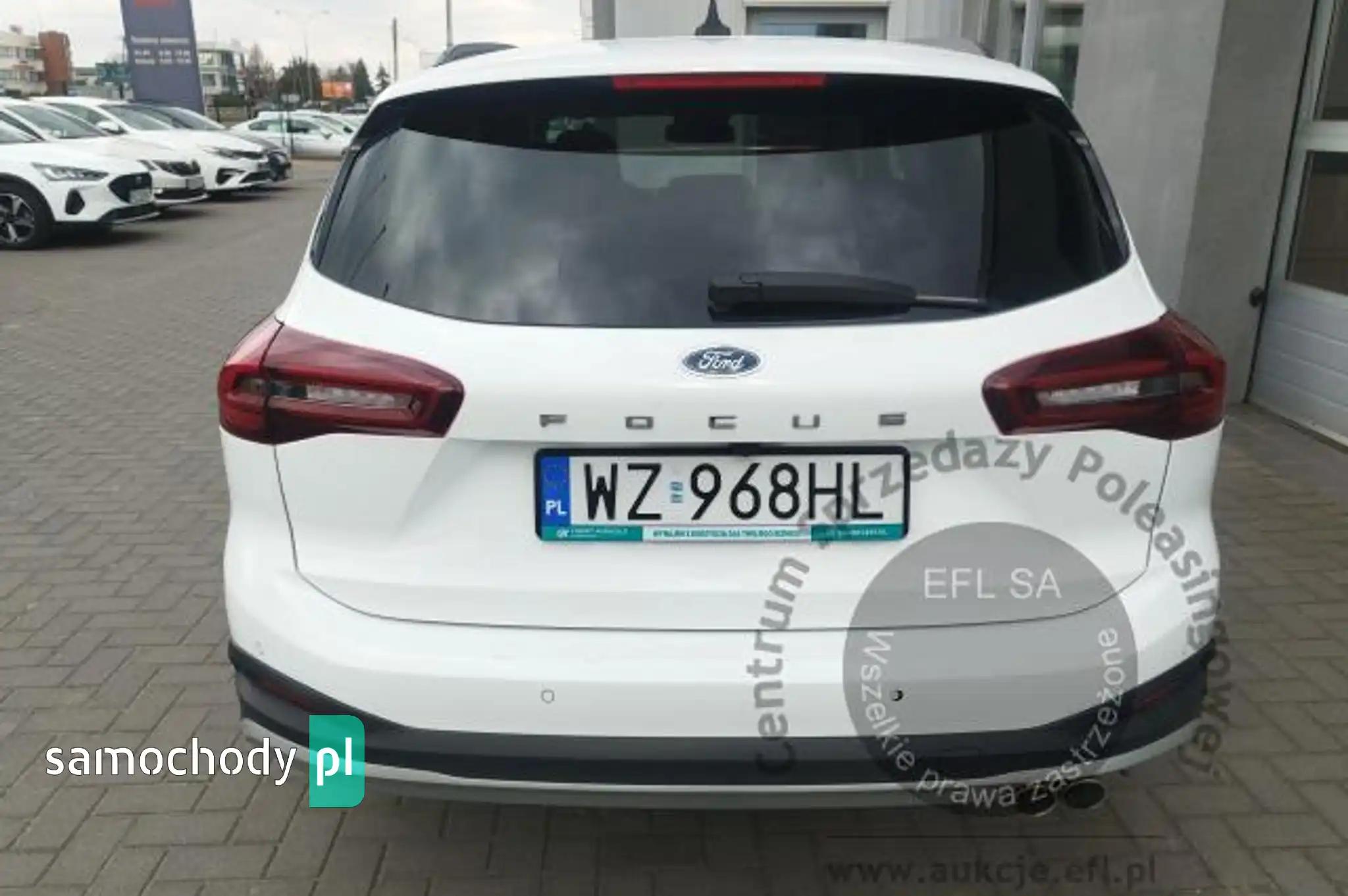 Blokada zamków tylnych drzwi uniemożliwiająca otwarcie ich odśrodka przez dzieciCzujniki parkowania - z tyłu i z przoduDywaniki podłogowe – z przodu i z tyłu, weluroweeShifter - obrotowy przełącznik zmiany biegówFelgi aluminiowe 17", z ogumieniem 215/55Ford KeyFree - system centralnego zamka z kluczem eletronicznym (zawiera dwa zespoły kluczyka)Ford MyKey - funkcja programowania i przypisania do kluczyka ograniczeńFordPass Connect z modemem GSM (Zdalne zam./otw. zamków,funkcja lokalizacji pojazdu,statussystemów)Fotel kierowcy - regulacja podparcia odcinka lędźwiowegoFotel kierowcy - ręczna regulacja pochylenia oparciaFotel pasażera - ręczna regulacja położenia w 4 kierunkach (góra-dół, przód-tył)Fotele przednie - styl sportowyFunkcja automatycznego hamowania po kolizjiGniazdko 12V w bagażnikuHamulec postojowy, elektrycznyImmobilizer PATSISOFIX - system mocowania fotelików dziecięcych na skrajnych siedzeniach w 2 rzędzieKamera ułatwiająca parkowanie - z tyłuKanapa tylna, oparcie składane i dzielone w proporcji 60:40, otw. do przewozu nart i skład. podłok.Kierownica - 3-ramienna, wykończona skórą ekologiczną SensicoKierownica ze zdalnym sterowaniem systemem audioKlimatyzacja - dwustrefowa z automatyczną regulacją temperatury (DEATC)Konsola centralna - 2 gniazda USB z tyłu konsoliKonsola centralna - z przesuwanym podłokietnikiem i schowkiem zamykanym roletkąKonsola dachowa - krótkaLakier zwykły, Frozen WhiteLane Keeping Alert zawiera Lane Keeping Aid (system wspomagający utrzymanie na pasie ruchu)Listwy wzdłuż progów oraz listwy ochronne nadkoli w stylizacji ActiveLusterka boczne sterowane,podgrzewane i składane elektr., lampki ośw. podłoże, w kolorze nadwoziaLusterko wsteczne - automatycznie ściemniające sięŁadowarka bezprzewodowa do smartfonówOgranicznik prędkości, inteligentnyOświetlenie wnętrza - lampki LED w 1 i 2 rzędzie siedzeńOświetlenie wnętrza diodami LED z elementami nastrojowego oświetleniaPakiet 4 lata ochrony: Ford Protect, gwarancja i serwis w ceniePodsufitka w jasnej tonacjiPoduszki powietrzne - boczne kurtyny powietrzne chroniące osoby w 1 i 2 rzędzie siedzeńPoduszki powietrzne – poduszki czołowe dla kierowcy i pasażera z przoduPoduszki powietrzne – poduszki powietrzne boczne dla pasażera i kierowcy z przoduPrzycisk rozrusznika Ford PowerReflektory - Full LED, statyczne (światła dzienne, drogowe, kierunkowskazy w technoligii LED)Reflektory - światła przeciwmgielne LED z funkcją doświetlania zakrętów zintegrowane wreflektorachReflektory automatyczne, włączające się w zależności od poziomu natężenia światłaRelingi bagażnika dachowego z wykończeniem w kolorze czarnymRoleta zasłaniająca przestrzeń bagażowąSpojler tylnySystem ABS z elektronicznym układem podziału siły hamowania EBDSystem audio z Sync 4, nawigacją i DAB+, kolorowy wyś. dotyk. 13.2", ACP, AA, Bluetooth, 6głośnikówSystem Auto-Start-StopSystem monitorowania ciśnienia w ogumieniu (TPMS)System Pre-Collision Assist wspier. kierowcę w unikaniu lub zmniejszaniu skutkówkolizji+FCW+DBS+AEBSystem wyboru trybu jazdySzyby boczne – obramowania w kolorze czarnymSzyby dodatkowo przyciemniane - w tylnej części nadwoziaSzyby elektr. przód i tył, z czujnikiem przeszkody oraz funkcją całkowitego otwierania i zamykaniaŚwiatła hamowania awaryjnego - pulsujące światła stop,włączające się automatycznie podczashamowaniaŚwiatła tylne częściowo w technologii LEDTapicerka materiałowa Nunatak w ciemnej tonacji, z niebieskimi przeszyciamiTempomatUchwyt dźwigni zmiany biegów wykończony skórąUkład elektroniczny stabilizacji toru jazdy (ESC) z układem kontroli trakcji (TC)Układ kierowniczy - ze wspomaganiem elektrycznym (EPAS)Układ ułatwiający ruszanie na wzniesieniach (HLA)Usługi Ford Smart (1 rok) - dodatkowe dane w systemie nawigacjiWycieraczka tylnej szybyWycieraczki przedniej szyby sterowane automatycznie, z czujnikiem deszczuWyłącznik poduszki powietrznej pasażera z przoduWyświetlacz na tablicy zegarów - 12.3" kolorowyZamek centralny - sterowany pilotemZawieszenie Active, z prześwitem zwiekszonym o ok. 30 mmZawieszenie przednie - niezależne z kolumnami McPhersona, stabilizator przechyłówZawieszenie tylne - wielowahaczoweKoło zapasowe - dojazdowe 16"Pakiet WinterFotele przednie podgrzewane, z regulacją temperaturyKierownica podgrzewanaSzyba przednia podgrzewana (Quickclear)