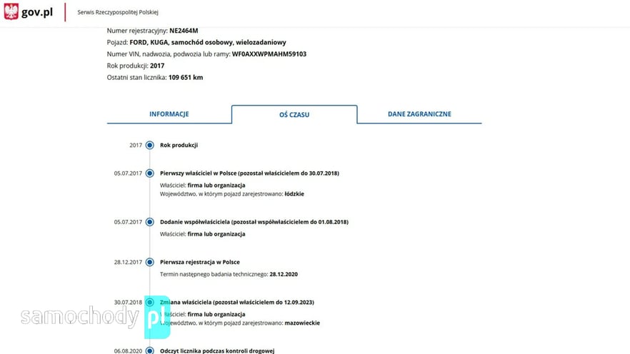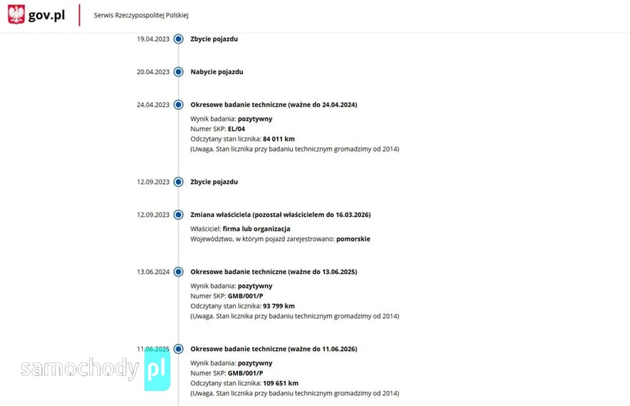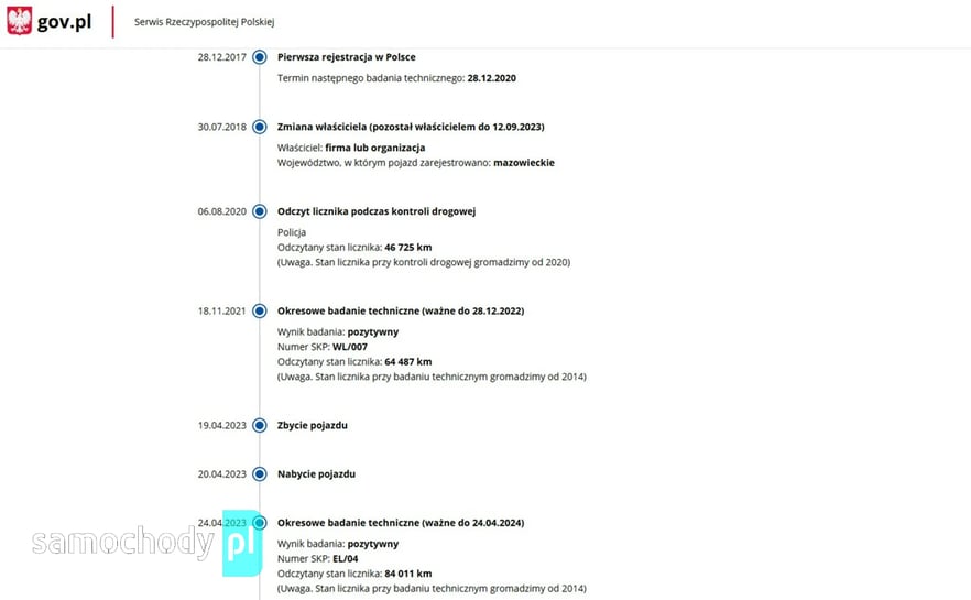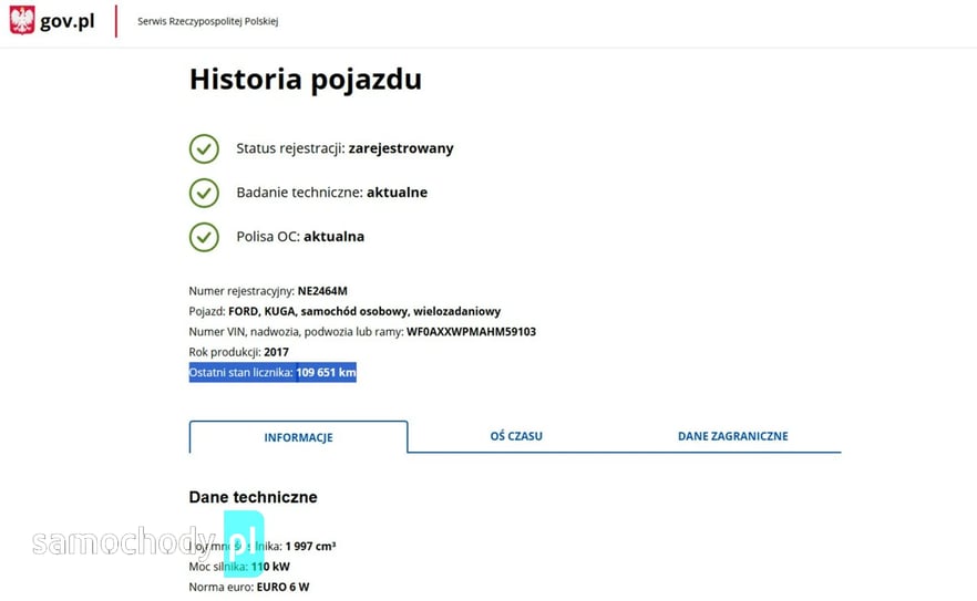 PONIŻEJ PODAJE DANE NIEZBĘDNE DO DARMOWEJ WERYFIKACJI HISTORII PREZENTOWANEGO AUTA NA STRONIE MINISTERSTWA TRANSPORTU