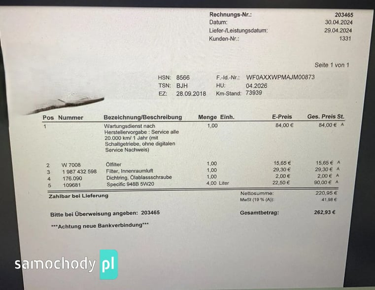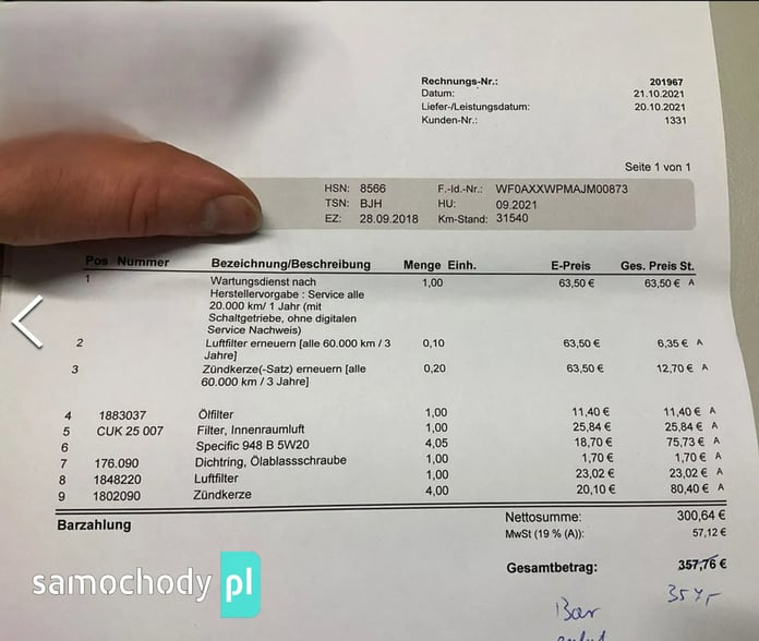 Auto z Niemiec od pierwszego właściciela z pełną historią serwisowania, całe w oryginalnym lakierze, udzielamy rocznej pisemnej gwarancji.