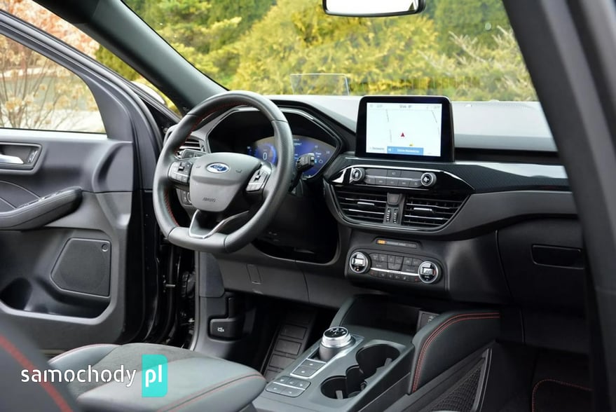 • Mulitfunkcyjna skórzana kierownica ST-LINE(z przeszyciem nić czerwona)