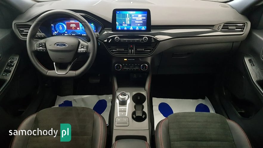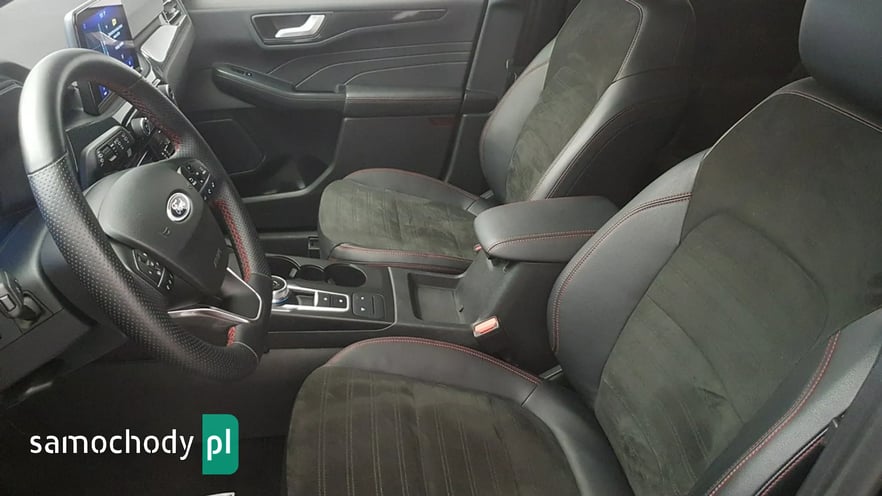 podłokietnikiem na środku, z uchwytami na kubki, Kierownica wykończona skórą ekologiczną Sensico, w stylizacji ST-Line,