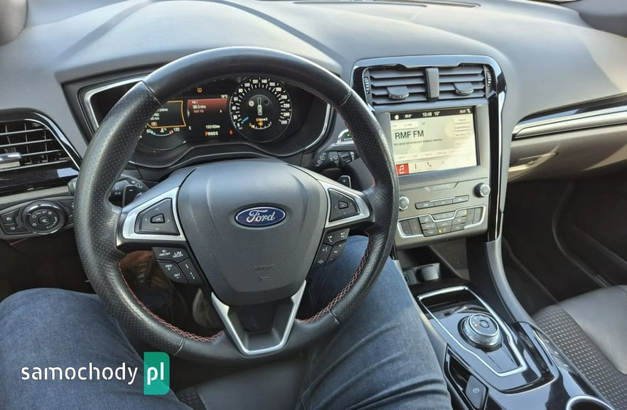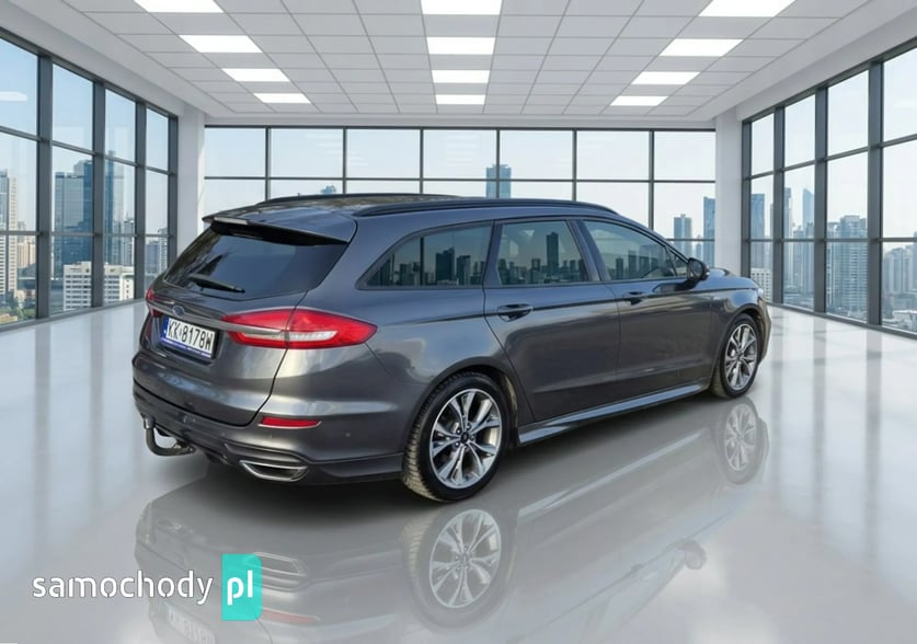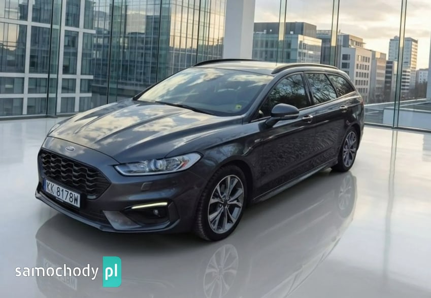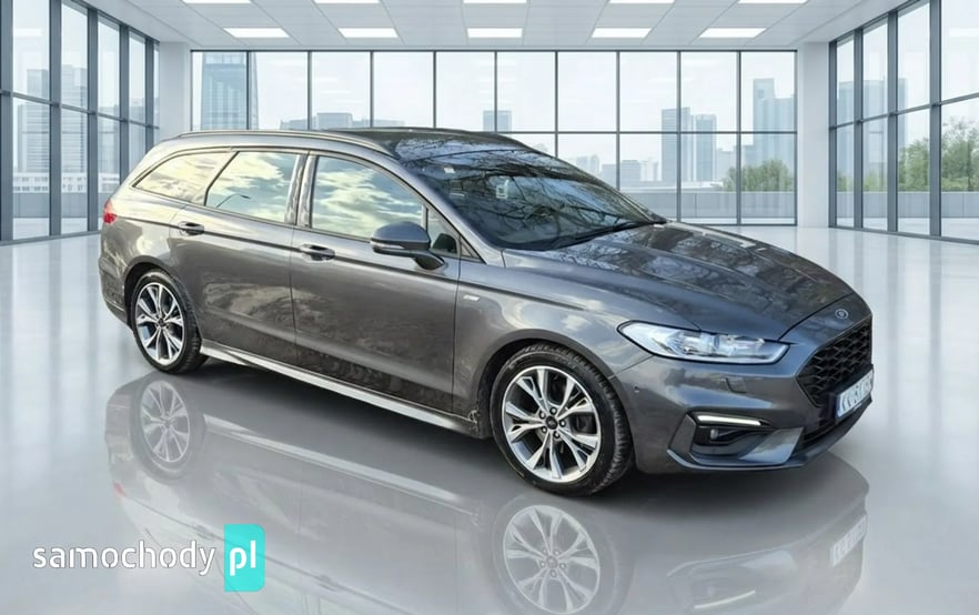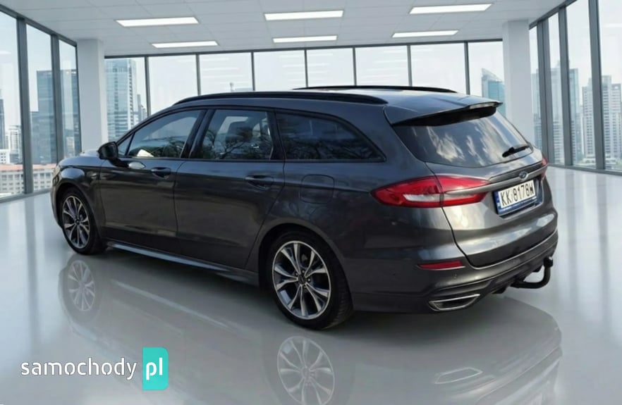 FORD MONDEO 2.0 EcoBlue ST-Line 190KM AUTOMAT – 2019 rok, dynamiczne i komfortowe kombi z nowoczesnym silnikiem diesla, automatyczną skrzynią biegów, przebieg 152 900 km. Idealny wybór dla rodziny oraz osób ceniących przestrzeń, bezpieczeństwo i bogate wyposażenie.