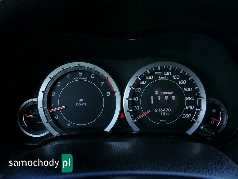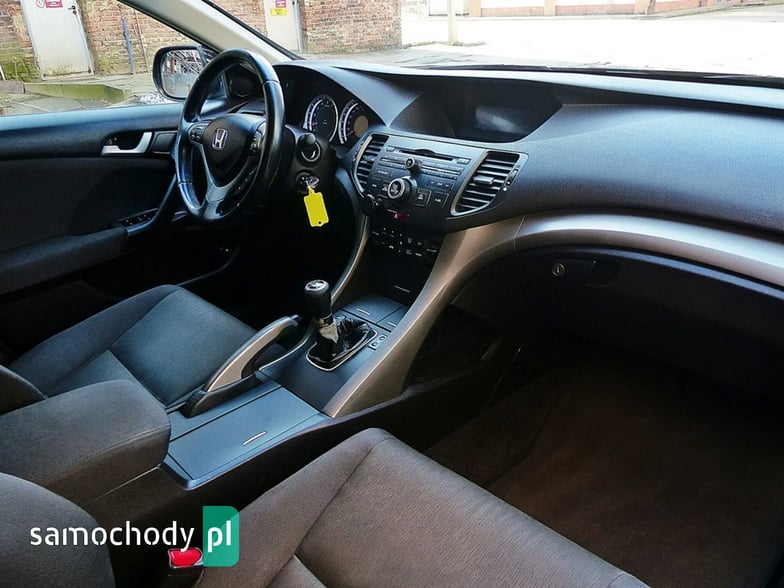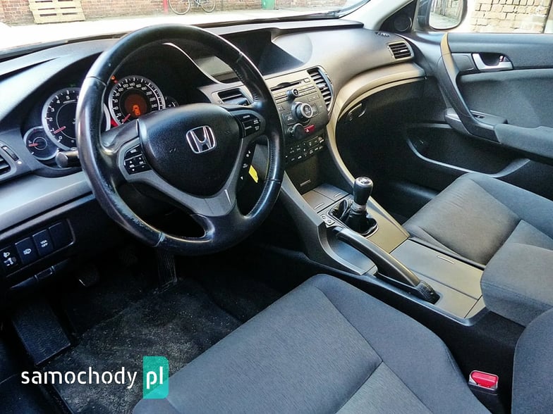 Mam do sprzedania bardzo ładną i bogato wyposażoną Hondę Accord Kombi z roku 2009 w kolorze czarny metallic. Auto jest wyposażone w benzynowy silnik o pojemności 2000 ccm i mocy 156 koni mechanicznych z manualna 6-biegową skrzynią biegów. Jest to jednostka napędowa, charakteryzująca się bardzo dobrą dynamiką i osiągami, a przy tym małym zużyciem paliwa i wysoką trwałością. To jednostka napędowa słynąca z przebiegów 600- 700 tysięcy bez remontu silnika. Accord z tym silnikiem idealnie łączy cechy auta do miasta i na trasę – chyba najlepszy napęd do tego auta. Silnik w doskonałym stanie, suchy bez wycieków, nie przepala oleju. Zawdzięcza się to regularnemu serwisowaniu i dbaniu o stan auta.