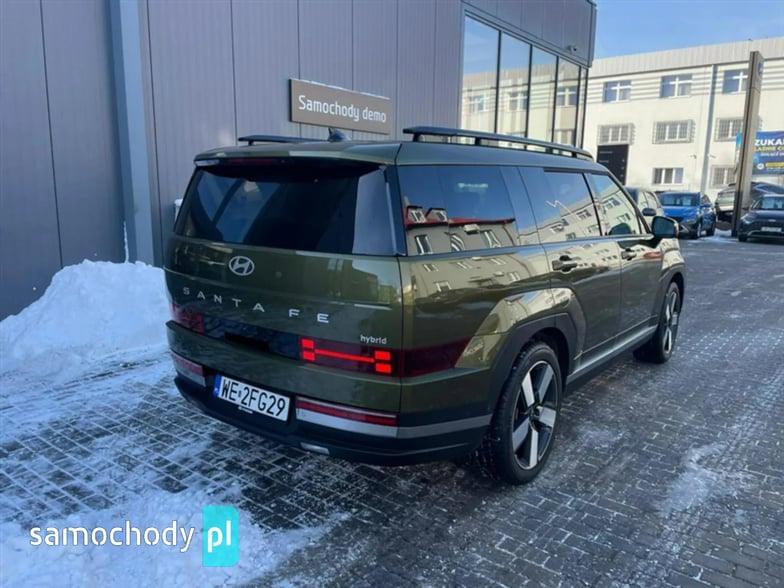 Hyundai Santa Fe z 2024 roku w bardzo bogatej wersji wyposażenia Platinum + Sun + Tech z bezawaryjnym, prostym i oszczędnym silnikiem 1.6 T-GDI HEV o łącznej mocy 215KM. W pełni automatyczny napęd na 4 koła (4WD). Połączony z automatyczną 6 biegową skrzynią biegów. Samochód z polskiej sieci dealerskiej od pierwszego właściciela (centrala Hyundaia) regularnie serwisowany, zadbany.