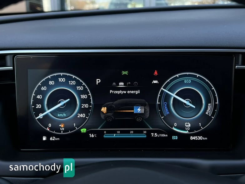Hyundai Tucson z niezawodnym silnikiem benzynowym 1.6T-GDI o łącznej mocy 230KM, połączonym z automatyczną skrzynią biegów. Napęd na przednie koła. Auto w bogatej wersji wyposażenia Platinum. Samochód z polskiej sieci dealerskiej, serwisowany w ASO, od pierwszego właściciela. Komplet kluczyków oraz dokumentów.