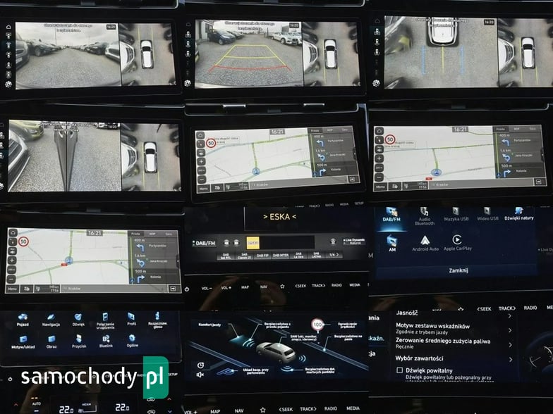 ABS, Android Auto, Apple CarPlay, Interfejs Google Car Play, aktywne rozpoznawanie znaków ograniczenia prędkości, aktywny asystent hamowania awaryjnego, aktywny asystent zmiany pasa ruchu, aktywny system monit. kondycji kierowcy, asystent hamowania - Brake Assist, asystent hamowania awaryjnego w mieście, asystent świateł drogowych, autoalarm, automat. hamulec postojowy, automatyczna kontrola zjazdu ze stoku, automatyczne światła, blokada drzwi podczas jazdy, bluetooth, centralny zamek, czujnik deszczu i zmierzchu, czujniki ciśnienia w oponach, czujniki parkowania: przód i tył, dach otwierany elektrycznie, dach szklany - panoramiczny, domykanie szyb przy zamykaniu auta, dostęp do internetu, dynamiczne światła doświetlające zakręty, ekran dotykowy, elektrochromatyczne lusterko wsteczne, elektryczne lusterka (regulowane, podgrzewane, składane, z czujnikiem martwego pola), elektryczne szyby przednie i tylne, elektrycznie sterowana klapa bagażnika, elektrycznie ustawiany fotel kierowcy i pasażera, felgi aluminiowe 19, filtr cząstek stałych, fotele przednie wentylowane, gniazdo USB x4, immobiliser, kamera cofania 360 stopni, keyless Go, keyless entry, kierownica (wielofunkcyjna, ze sterowaniem radia, regulowana, obszyta skórą, podgrzewana), klimatyzacja: automatyczna 3-strefowa z klimatyzacją na tył, komputer pokładowy, kontrola odległości od poprzedzającego pojazdu, kontrola trakcji (ASR), lampy (do jazdy dziennej, przednie i tylne) w technologii LED, liczba poduszek 6, nawigacja satelitarna, ogranicznik prędkości, opony letnie, oświetlenie drogi do domu, oświetlenie wnętrza (ambient lighting), podgrzewana tylna szyba, podgrzewane przednie i tylne siedzenia, poduszki powietrzne: (kierowcy, pasażera z możliwością jej wyłączenia, boczne przód, kurtynowe przód), podłokietniki: przód i tył, przyciemniane tylne szyby z opuszczanym ręcznie roletami, regulacja elektryczna podparcia lędźwiowego kierowcy relingi w kolorze PIANO BLACK, siedzenie z pamięcią ustawienia fotela kierowcy, smartcard / hands free / smartkey, spoiler, stabilizacja toru jazdy (ESP), system głośnomówiący, system hamowania awaryjnego dla ochrony pieszych, system nagłośnienia KRELL, system odzyskiwania energii, system ostrzegania przed kolizją, system powiadamiania o wypadku, system rekomendacji przerw podczas trasy, system start-stop, system sterowania głosem, system wspomagania hamowania, tempomat adaptacyjny ACC, uchwyt ISOFIX, wspomaganie kierownicy, wspomaganie ruszania na wzniesieniu, wyjście aux, zestaw głośnomówiący, zintegrowany hotspot WiFi, łopatki zmiany biegów, dywaniki welurowe, hak, zestaw chrom, SOS, ładowanie indukcyjne telefonu, mata bagażnika, roleta bagażnika, zestaw naprawczy do opony, system wyświetlający widok z martwego pola, alarm ruchu poprzecznego z tyłu pojazdu, skrzynia biegów sterowana za pomocą przycisków, wykończenie grilla w kolorze ciemnego chromu, gaśnica, trójkąt ostrzegawczy, kamizelka.