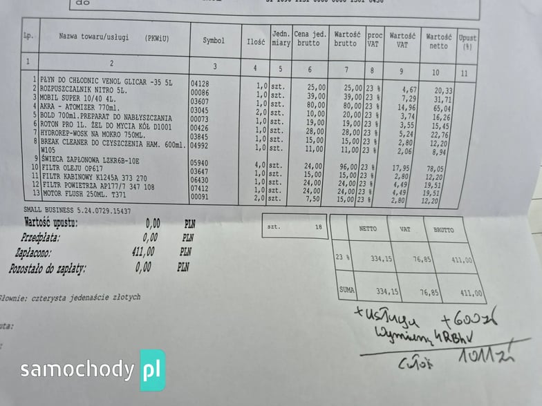 Wykonaliśmy mały serwis .olej, wszystkie filtry x 3szt., świece zapłonowe + serwis klimatyzacji