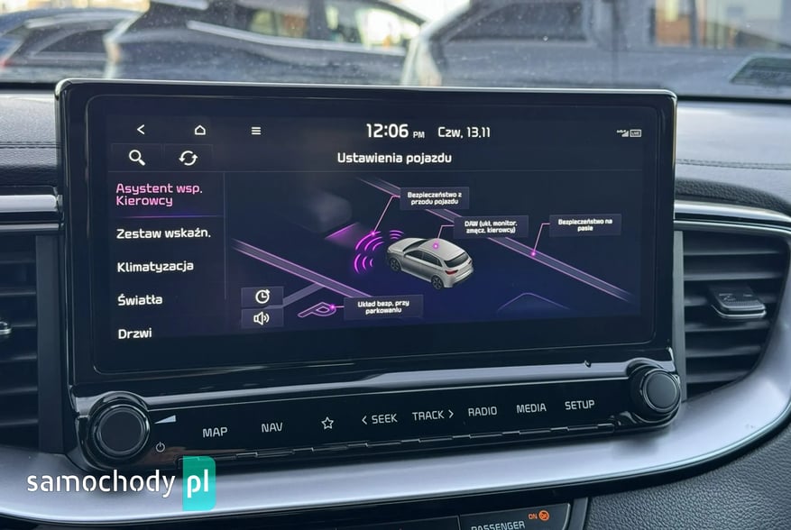 - Navi System - system nawigacji satelitarnej z obsługą w języku polskim, 10.25” kolorowy ekran dotykowy LCD, 7 letni plan darmowej aktualizacji map, tuner radia cyfrowego DAB Kia Connect– zestaw usług cyfrowych
