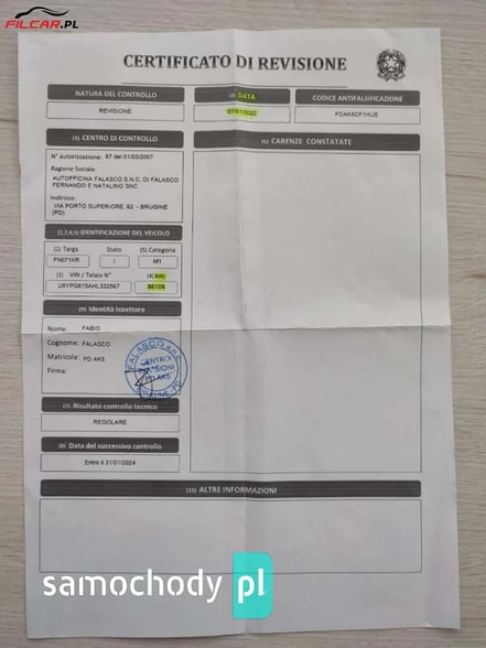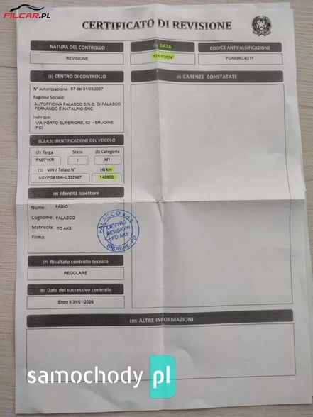 * Możliwość wykonania jazdy testowej.