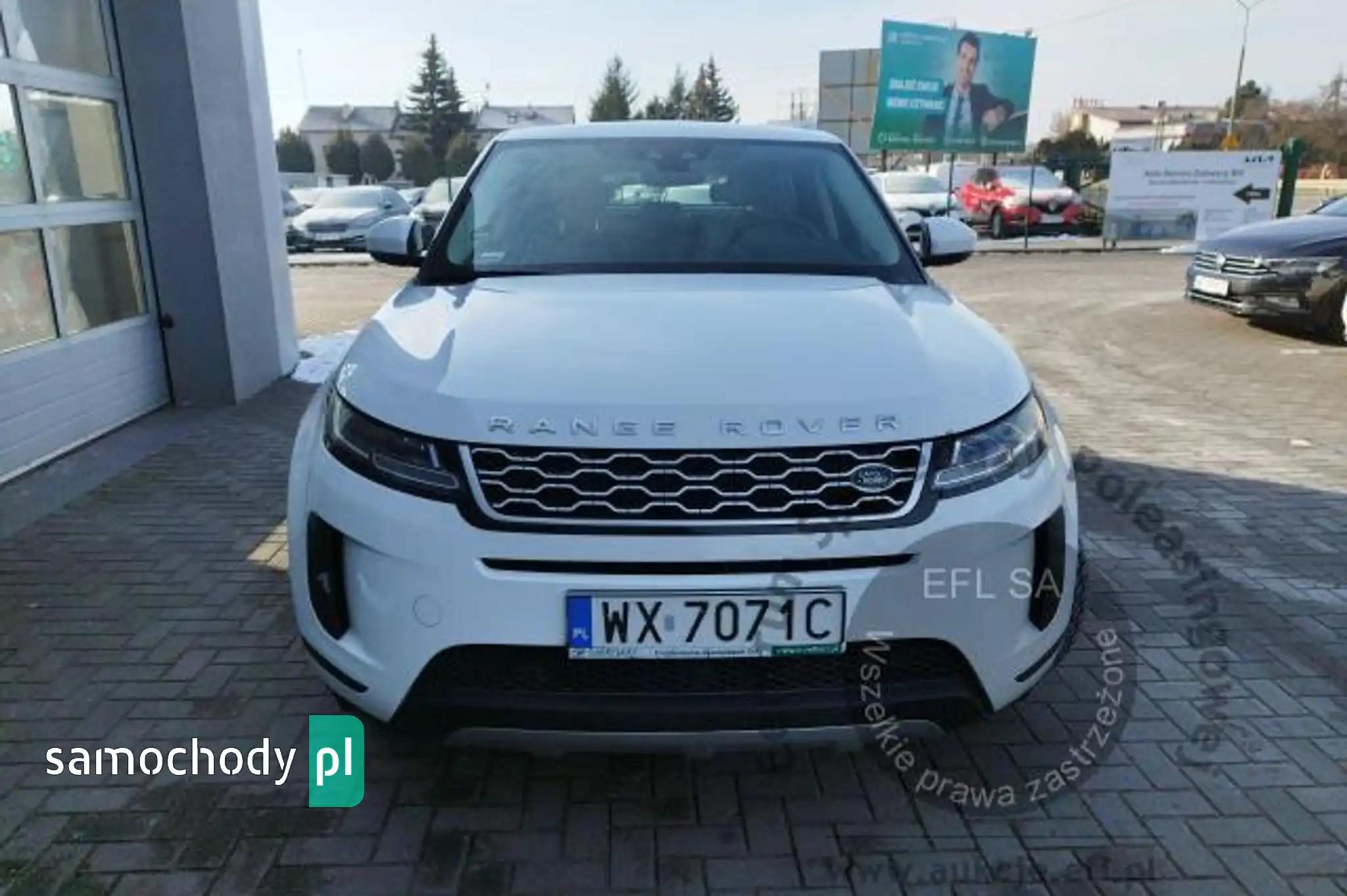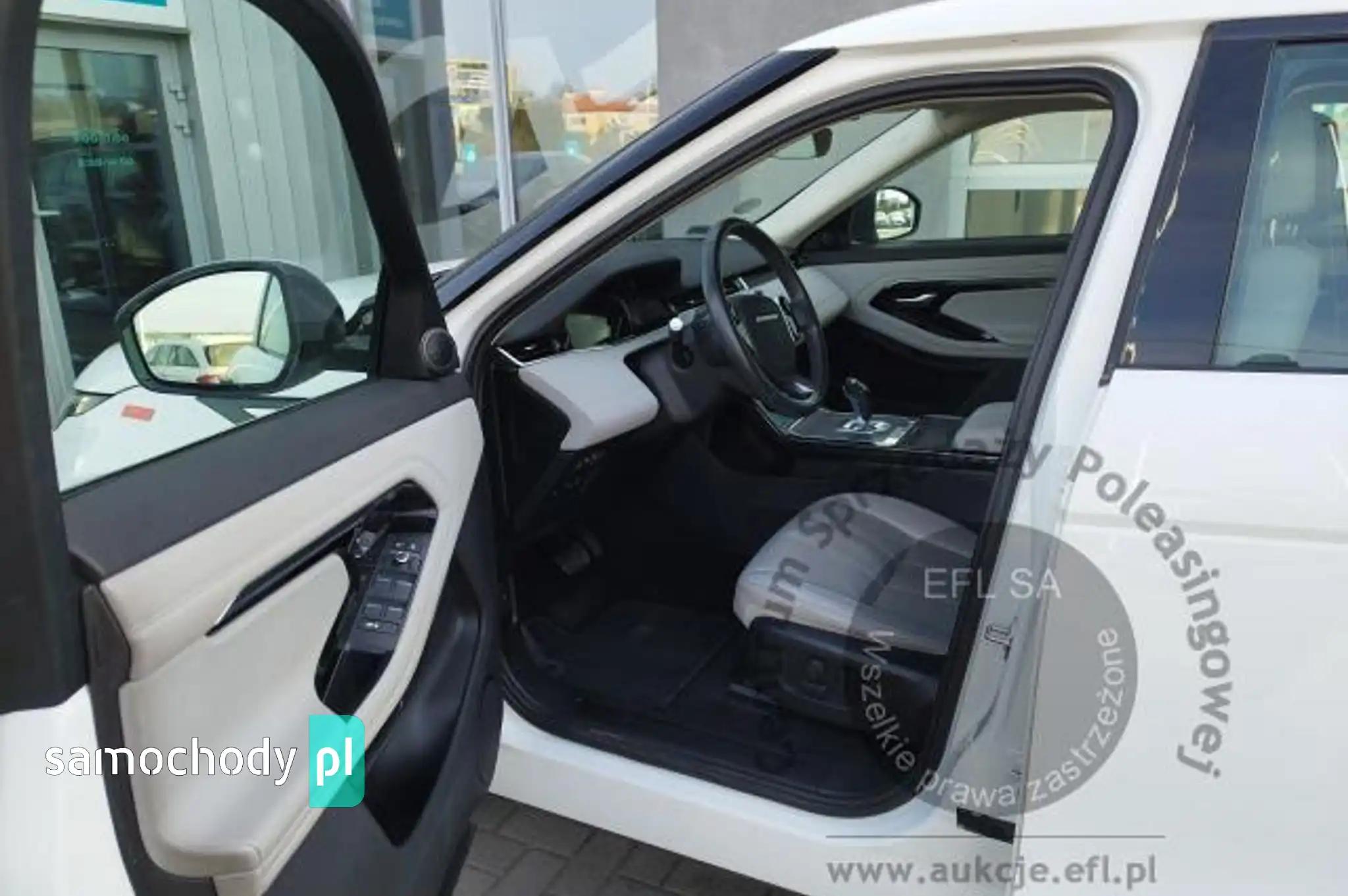 ABSAll Terrain Progress Control (ATPC)Asystent ruszania na wzniesieniu (Hill Start Assist)Autonomiczny system awaryjnego hamowaniaBluetoothCzujnik deszczuCzujnik parkowania - przód i tyłDach metalowyDach w kolorze nadwoziaFelgi aluminiowe 18, 5-ramienne (wzór 5075) z ogumieniemFotele przednie regulowane elektr. w 10 kierunkachFunkcja spersonalizowanych ustawień Smart SettingsGniazdo 12V 3xGniazdo USB 2xKamera ułatwiająca parkowanie - tyłKanapa tylna składana, dzielona 40/20/40Kierownica skórzanaKierownicy kolumna regulowana manualnieKlamki zewnętrzne, wysuwaneKlapa bagażnika - manualnie otwierana i zamykanaKlimatyzacja - nawiewy dla pasażerów z tyłuKlimatyzacja automatyczna - 2 strefowaKoło zapasowe dojazdoweLakier uniLampy przednie LEDLampy przednie poziomowane manualnieLusterka zew. regulowane i składane elektr., elektrochromatyczne, ogrzewane, z doświetleniem podłożaLusterko wsteczne elektrochromatyczne (przyciemniające się automatycznie)Nakładki progowe przednie nieoświetloneNapęd na 4 koła, efektywny(Efficient Driveline)Oświetlenie wnętrza LEDOznaczenie D180Oznaczenie EvoqueOznaczenie SPakiet Power BasePodłokietnik tylny centralnyPodsufitka w kolorze Light OysterPro Services oraz Wi-Fi HotspotRemote (usługa)System audio Sound System 180 WSystem kontroli zjazdu (Hill Descent Control)System lacznosci BluetoothSystem monitorowania ciśnienia w ogumieniu (TPMS)System monitorujący kondycję kierowcySystem nawigacji Pro - mapy na dysku SSDSystem ostrzegajacy o opuszczeniu pasa jazdy wraz z systemem utrzymywania pasa ruchuSystem rozpoznawania znaków drogowych z adaptacyjnym ograniczeniem prędkościSystem stabilizacji toru jazdy za pomocą układu hamulcowegoSystem Terrain Response 2Tapicerka skórzana Grained w kolorze Ebony z wnętrzem Ebony/EbonyTempomat z ogranicznikiem prędkościWykończenie wnętrza Gradated Linear Bright AluminiumWyświetlacz dotykowy 10 cali, kolorowyZasłonki przeciwsłoneczne z podświetlanymi lusterkamiZawieszenie pasywneZbiornik DEF (Diesel Exhaust Fluid)Zbiornik paliwa standardowyZegary analogowe z centralnie umieszczonym kolorowym wyświetlaczem