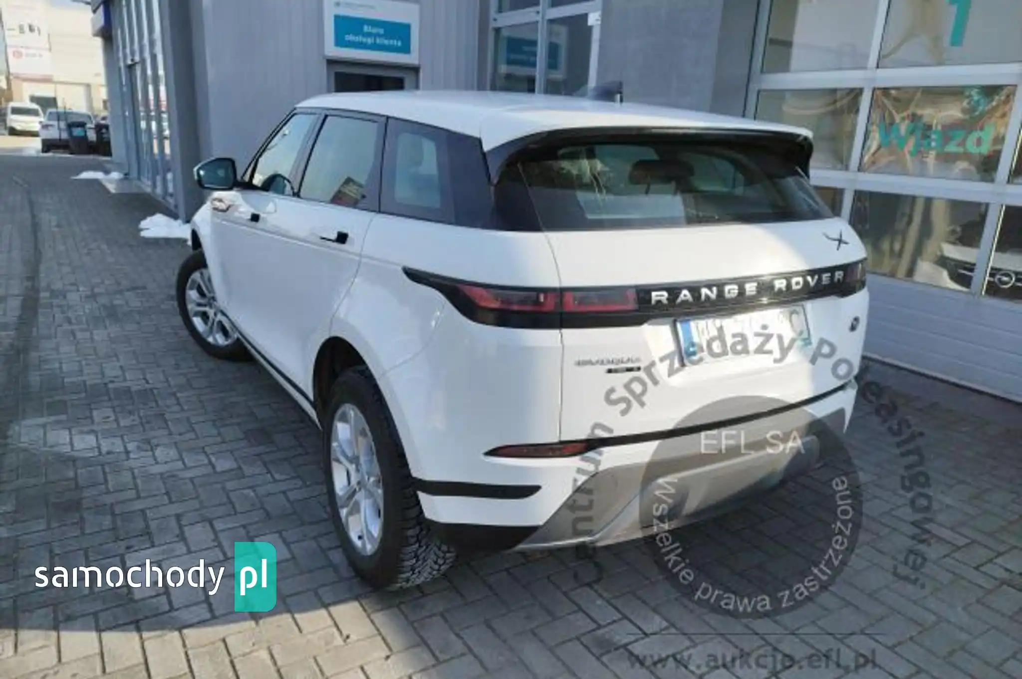 ABSAll Terrain Progress Control (ATPC)Asystent ruszania na wzniesieniu (Hill Start Assist)Autonomiczny system awaryjnego hamowaniaBluetoothCzujnik deszczuCzujnik parkowania - przód i tyłDach metalowyDach w kolorze nadwoziaFelgi aluminiowe 18, 5-ramienne (wzór 5075) z ogumieniemFotele przednie regulowane elektr. w 10 kierunkachFunkcja spersonalizowanych ustawień Smart SettingsGniazdo 12V 3xGniazdo USB 2xKamera ułatwiająca parkowanie - tyłKanapa tylna składana, dzielona 40/20/40Kierownica skórzanaKierownicy kolumna regulowana manualnieKlamki zewnętrzne, wysuwaneKlapa bagażnika - manualnie otwierana i zamykanaKlimatyzacja - nawiewy dla pasażerów z tyłuKlimatyzacja automatyczna - 2 strefowaKoło zapasowe dojazdoweLakier uniLampy przednie LEDLampy przednie poziomowane manualnieLusterka zew. regulowane i składane elektr., elektrochromatyczne, ogrzewane, z doświetleniem podłożaLusterko wsteczne elektrochromatyczne (przyciemniające się automatycznie)Nakładki progowe przednie nieoświetloneNapęd na 4 koła, efektywny(Efficient Driveline)Oświetlenie wnętrza LEDOznaczenie D180Oznaczenie EvoqueOznaczenie SPakiet Power BasePodłokietnik tylny centralnyPodsufitka w kolorze Light OysterPro Services oraz Wi-Fi HotspotRemote (usługa)System audio Sound System 180 WSystem kontroli zjazdu (Hill Descent Control)System lacznosci BluetoothSystem monitorowania ciśnienia w ogumieniu (TPMS)System monitorujący kondycję kierowcySystem nawigacji Pro - mapy na dysku SSDSystem ostrzegajacy o opuszczeniu pasa jazdy wraz z systemem utrzymywania pasa ruchuSystem rozpoznawania znaków drogowych z adaptacyjnym ograniczeniem prędkościSystem stabilizacji toru jazdy za pomocą układu hamulcowegoSystem Terrain Response 2Tapicerka skórzana Grained w kolorze Ebony z wnętrzem Ebony/EbonyTempomat z ogranicznikiem prędkościWykończenie wnętrza Gradated Linear Bright AluminiumWyświetlacz dotykowy 10 cali, kolorowyZasłonki przeciwsłoneczne z podświetlanymi lusterkamiZawieszenie pasywneZbiornik DEF (Diesel Exhaust Fluid)Zbiornik paliwa standardowyZegary analogowe z centralnie umieszczonym kolorowym wyświetlaczem