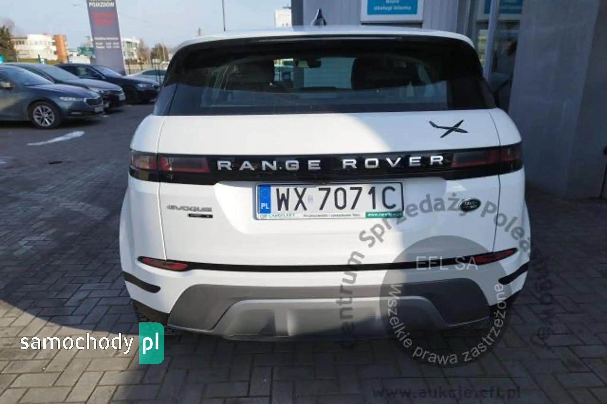 ABSAll Terrain Progress Control (ATPC)Asystent ruszania na wzniesieniu (Hill Start Assist)Autonomiczny system awaryjnego hamowaniaBluetoothCzujnik deszczuCzujnik parkowania - przód i tyłDach metalowyDach w kolorze nadwoziaFelgi aluminiowe 18, 5-ramienne (wzór 5075) z ogumieniemFotele przednie regulowane elektr. w 10 kierunkachFunkcja spersonalizowanych ustawień Smart SettingsGniazdo 12V 3xGniazdo USB 2xKamera ułatwiająca parkowanie - tyłKanapa tylna składana, dzielona 40/20/40Kierownica skórzanaKierownicy kolumna regulowana manualnieKlamki zewnętrzne, wysuwaneKlapa bagażnika - manualnie otwierana i zamykanaKlimatyzacja - nawiewy dla pasażerów z tyłuKlimatyzacja automatyczna - 2 strefowaKoło zapasowe dojazdoweLakier uniLampy przednie LEDLampy przednie poziomowane manualnieLusterka zew. regulowane i składane elektr., elektrochromatyczne, ogrzewane, z doświetleniem podłożaLusterko wsteczne elektrochromatyczne (przyciemniające się automatycznie)Nakładki progowe przednie nieoświetloneNapęd na 4 koła, efektywny(Efficient Driveline)Oświetlenie wnętrza LEDOznaczenie D180Oznaczenie EvoqueOznaczenie SPakiet Power BasePodłokietnik tylny centralnyPodsufitka w kolorze Light OysterPro Services oraz Wi-Fi HotspotRemote (usługa)System audio Sound System 180 WSystem kontroli zjazdu (Hill Descent Control)System lacznosci BluetoothSystem monitorowania ciśnienia w ogumieniu (TPMS)System monitorujący kondycję kierowcySystem nawigacji Pro - mapy na dysku SSDSystem ostrzegajacy o opuszczeniu pasa jazdy wraz z systemem utrzymywania pasa ruchuSystem rozpoznawania znaków drogowych z adaptacyjnym ograniczeniem prędkościSystem stabilizacji toru jazdy za pomocą układu hamulcowegoSystem Terrain Response 2Tapicerka skórzana Grained w kolorze Ebony z wnętrzem Ebony/EbonyTempomat z ogranicznikiem prędkościWykończenie wnętrza Gradated Linear Bright AluminiumWyświetlacz dotykowy 10 cali, kolorowyZasłonki przeciwsłoneczne z podświetlanymi lusterkamiZawieszenie pasywneZbiornik DEF (Diesel Exhaust Fluid)Zbiornik paliwa standardowyZegary analogowe z centralnie umieszczonym kolorowym wyświetlaczem