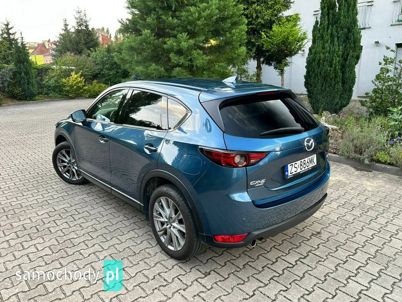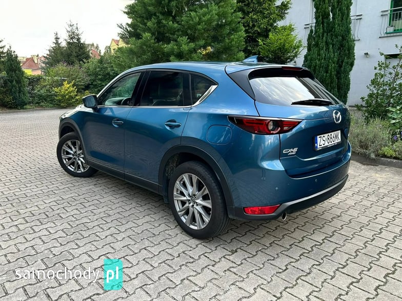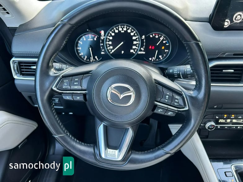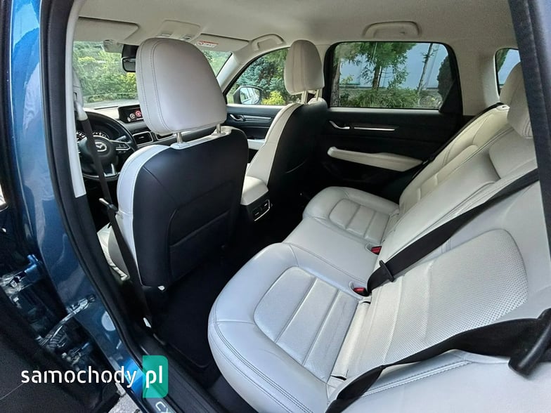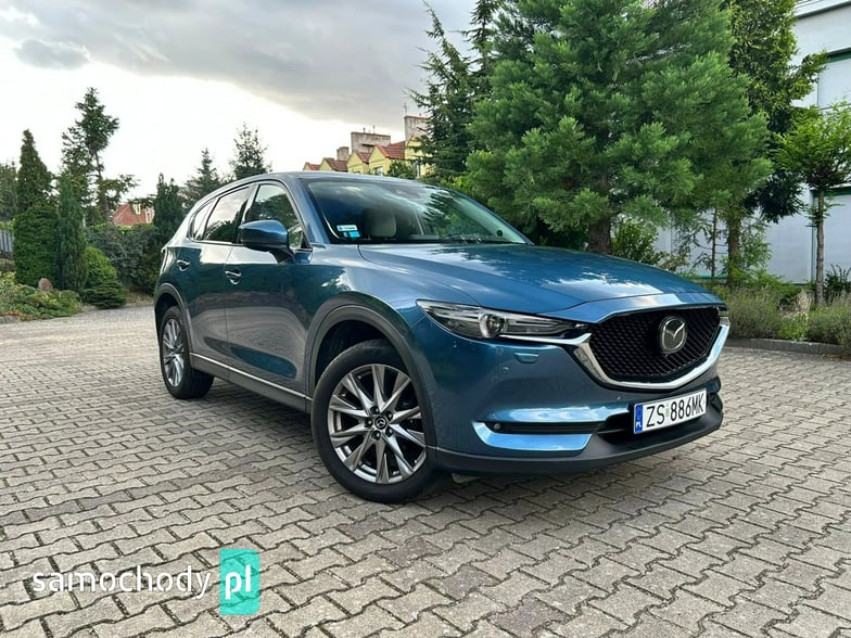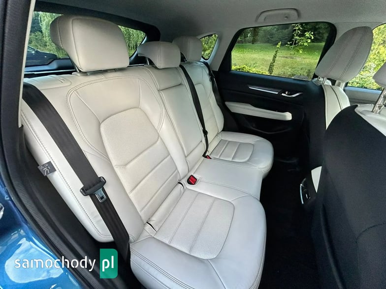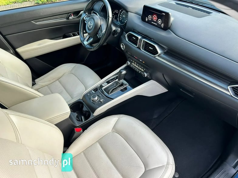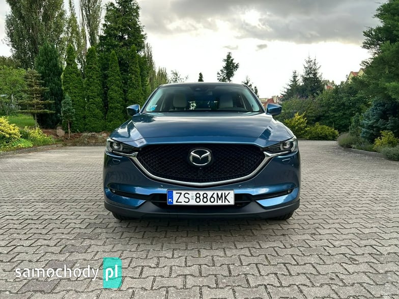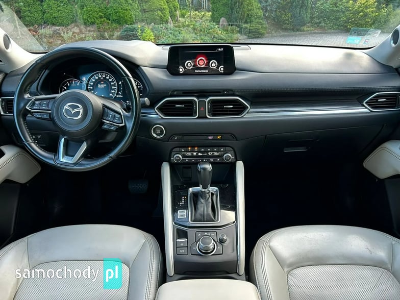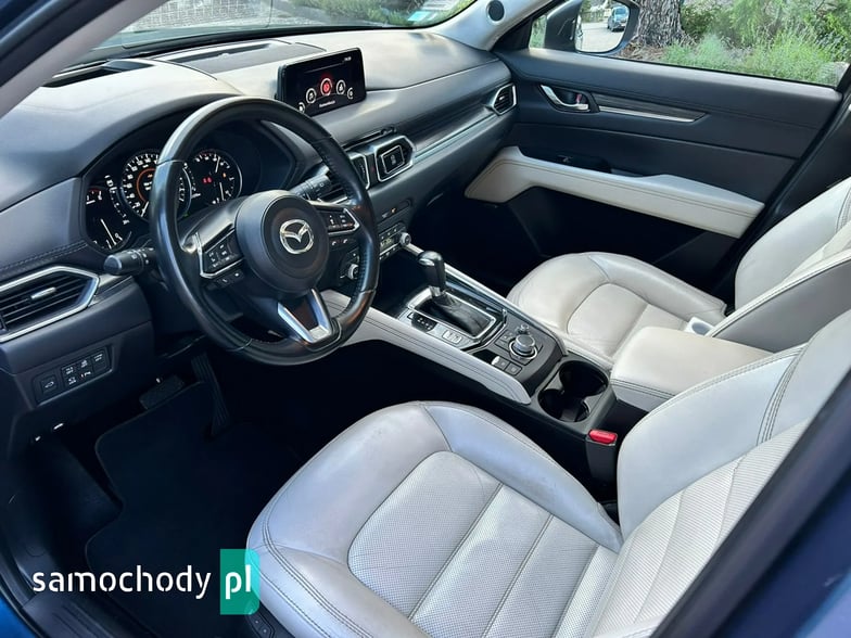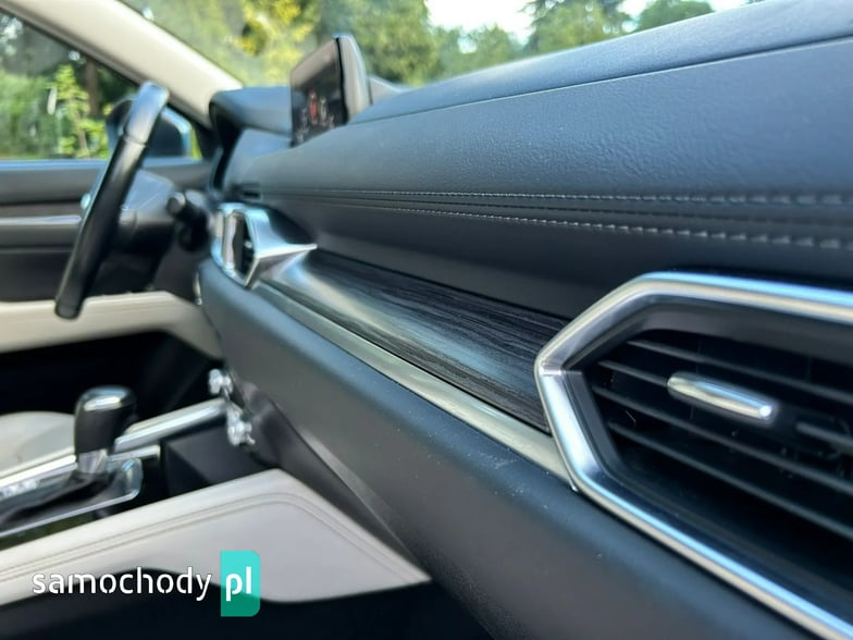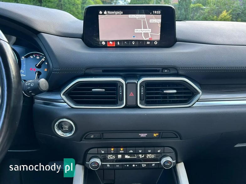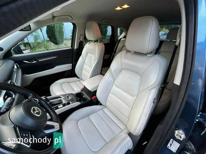 Na sprzedaż Mazda CX-5 SkyPASSION 2.5 194 KM (2019) – samochód krajowy z silnikiem benzynowym 2.5 o mocy 194 KM, automatyczną skrzynią biegów i napędem 4x4. Auto w świetnym stanie, z pełną historią serwisową w ASO Mazdy (dokumentację mogę przesłać zainteresowanym). W raporcie widnieje trzech właścicieli od nowości, jednak były to wyłącznie zmiany formalne – faktycznie użytkownikiem pojazdu była jedna osoba. Bogate wyposażenie wersji SkyPASSION obejmuje m.in. nagłośnienie BOSE, wyświetlacz HUD, wentylowane i podgrzewane fotele, skórzaną tapicerkę oraz adaptacyjne reflektory LED ALH.