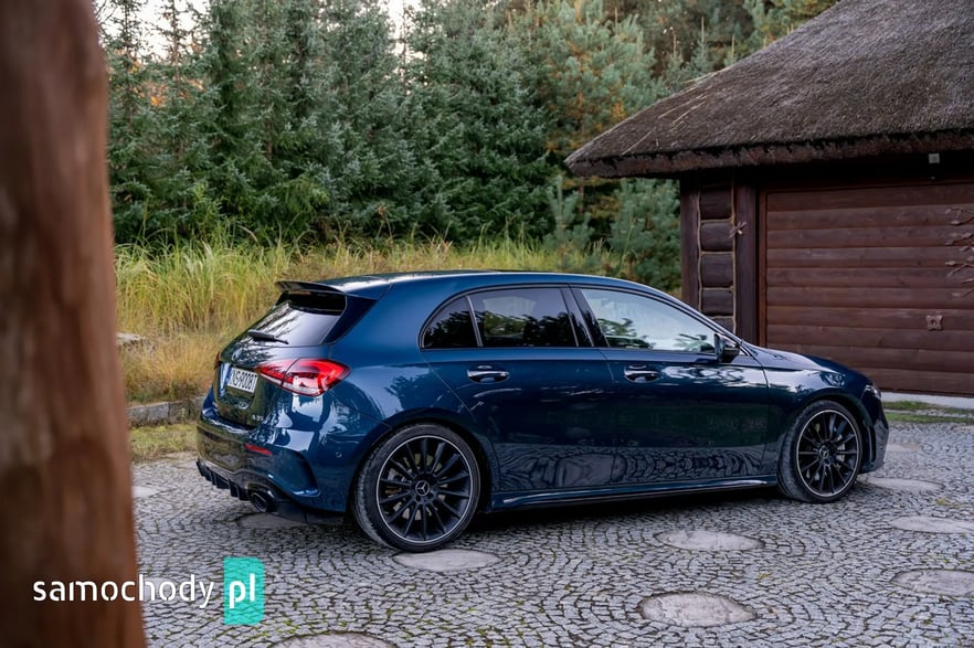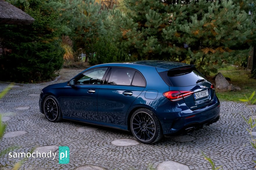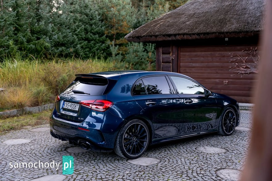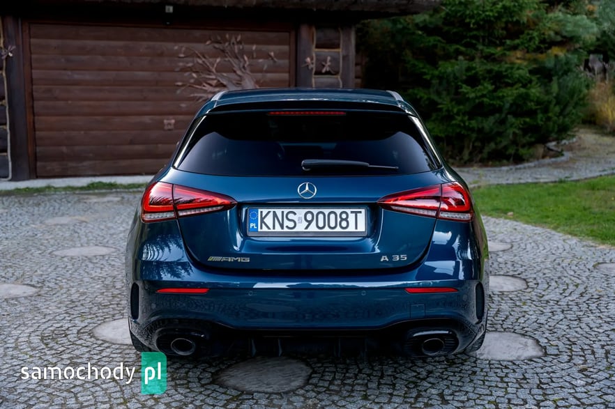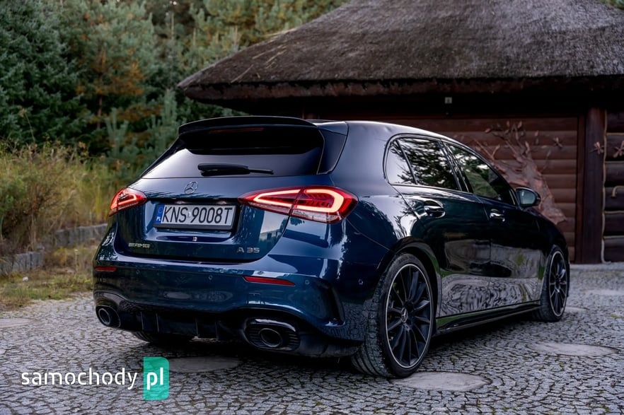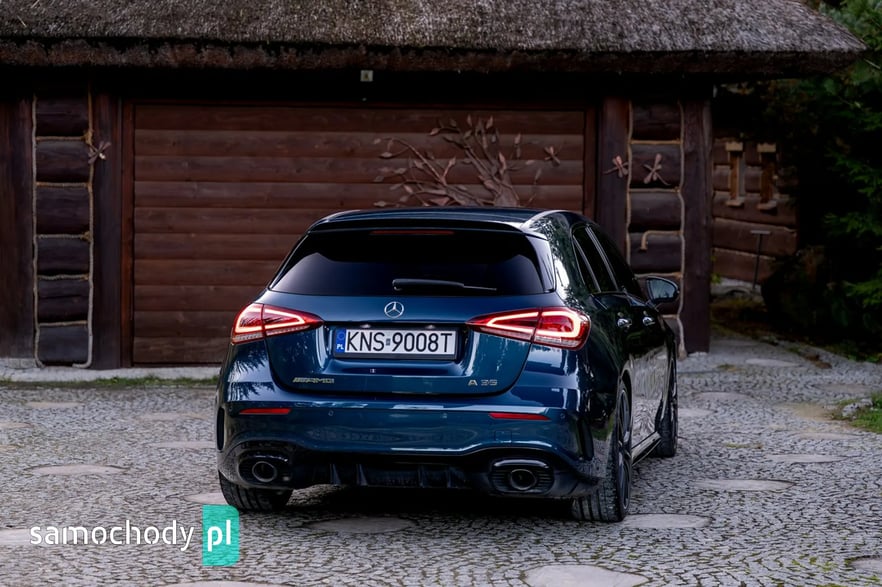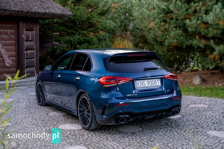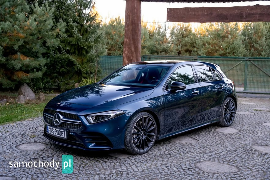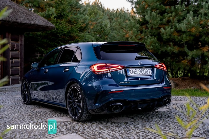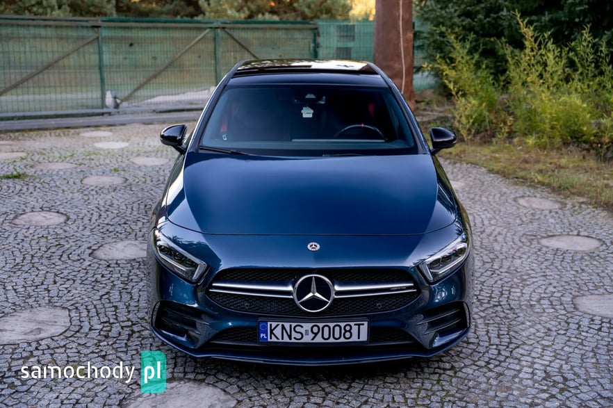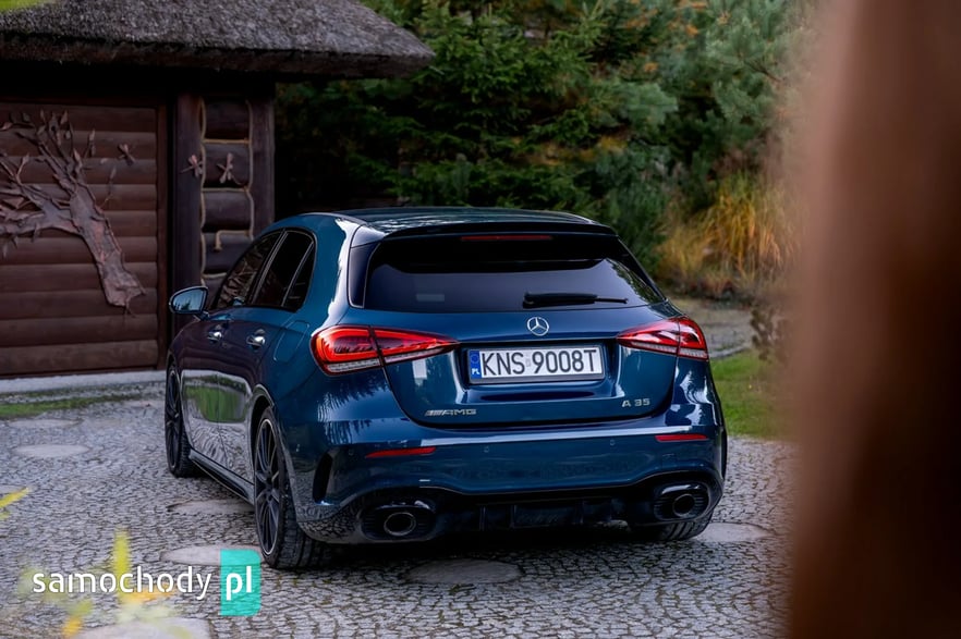 Mercedes-Benz A35 AMG to kompaktowy samochód sportowy, który łączy osiągi i styl z codzienną użytecznością. Pod maską ma turbodoładowany silnik 2,0 l generujący moc około 306 KM i 400 Nm, co pozwala mu przyspieszyć do 100 km/h w ok. 4,7 s. Napęd na cztery koła (4MATIC) oraz sportowo‑wyregulowane zawieszenie zapewniają dynamiczne prowadzenie. Wnętrze łączy sportowy klimat – z fotelami, kierownicą AMG i trybami jazdy – z nowoczesnymi rozwiązaniami multimedialnymi (system MBUX, wysokiej klasy wykończenia).
