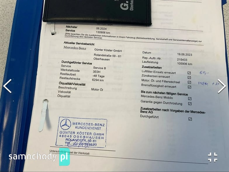 Pojazd bezwypadkowy, 2 klucze, 2 komplety alufelg z oponami zima/lato, przebieg potwierdzony historią serwisowania w ASO Mercedes Benz, stan wzorowy.