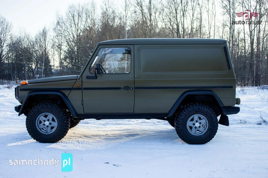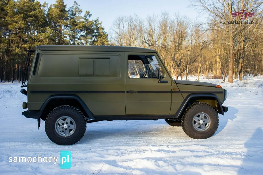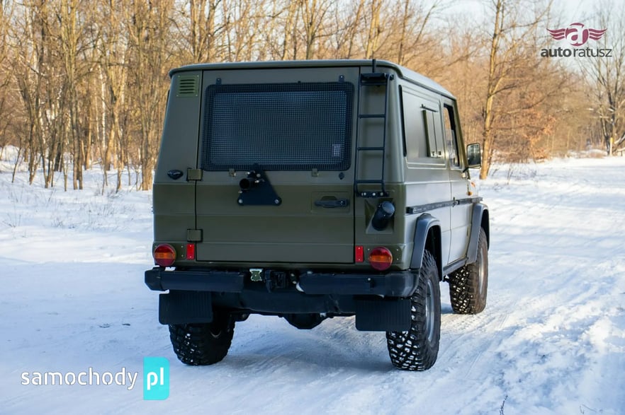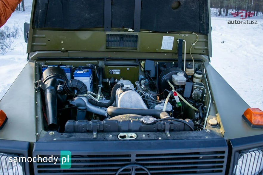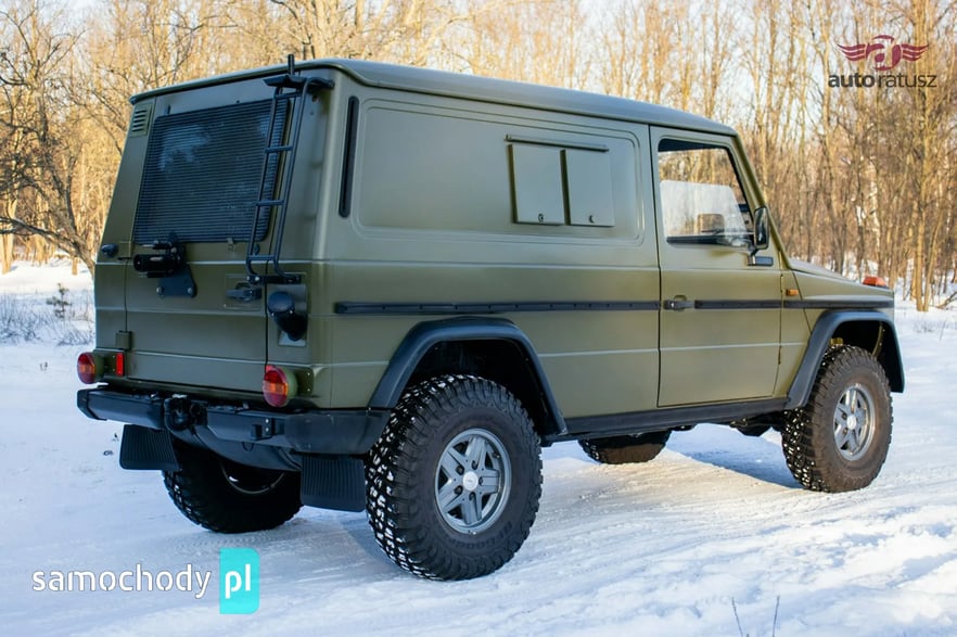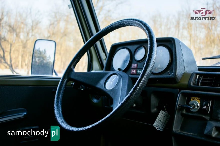 Mercedes-Benz 240 GD "Wolf" w rzadkiej, specjalistycznej wersji Radiostacja (Funkwagen). Ten egzemplarz z 1990 roku to oryginalny pojazd z zasobów niemieckiej armii (Bundeswehr). W odróżnieniu od cywilnych G-Klas, wersja wojskowa "Wolf" słynie z pancernej wytrzymałości, braku zbędnej elektroniki i rozwiązań dedykowanych na poligon. Prezentowany model pełnił funkcję wozu dowodzenia/łączności, co czyni go prawdziwą gratką dla fanów militariów i off-roadu. Pod maską pracuje legendarny, wolnossący diesel 2.4 (OM616) – silnik uznawany za jedną z najtrwalszych konstrukcji w historii motoryzacji.