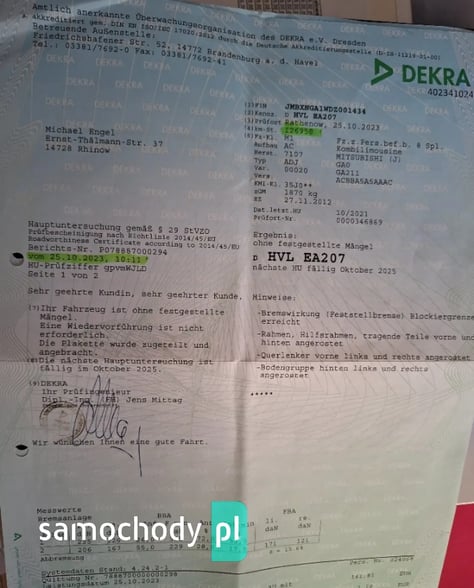 udokumentowany mały przebieg foto z DEKRY
