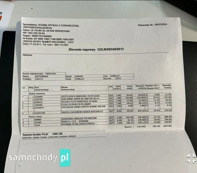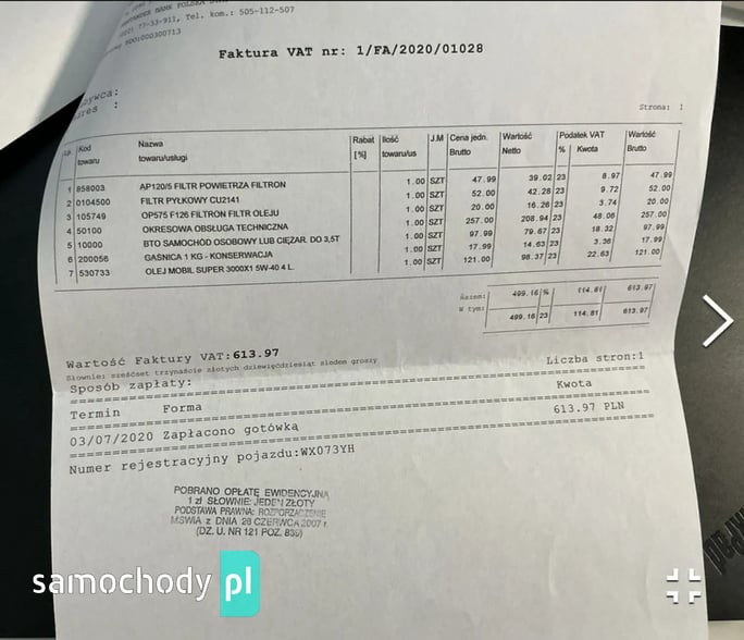 Do samochodu jest książka serwisowa oraz 2 komplety kół na osobnych alufelgach zima/lato.