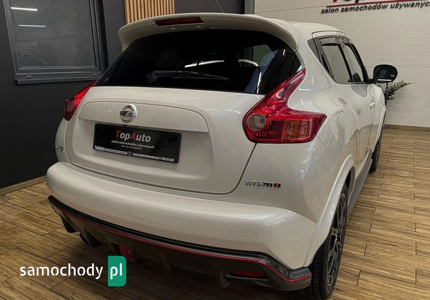 DO ZAOFEROWANIA BARDZO ŁADNY, ZADBANY NISSAN JUKE NISMO, WYPOSAŻONY W SILNIK BENZYNOWY 1.6 O MOCY 200KM. AUTO JEST W ŚWIETNYM STANIE TECHNICZNYM I WIZUALNYM. BARDZO ŁADNE, ZADBANE WNĘTRZE I LAKIER. PRZEBIEG 145.000 KM - GWARANTOWANY, POTWIERDZONY ODPOWIEDNIMI DOKUMENTAMI. AUTO SERWISOWANE. DODATKOWO WYDRUKI Z BADAŃ TECHNICZNYCH. W 100% BEZWYPADKOWY POSIADAMY ZDJĘCIA WYKONANE W MOMENCIE ZAKUPU - DO WGLĄDU W NASZYM SALONIE. WNĘTRZE ORAZ LAKIER W BARDZO DOBREJ KONDYCJI. PODWOZIE NISSANA JEST POKRYTE DODATKOWĄ POWŁOKĄ ANTYKOROZYJNĄ, POTWIERDZONE ZDJĘCIAMI ORAZ CERTYFIKATEM.