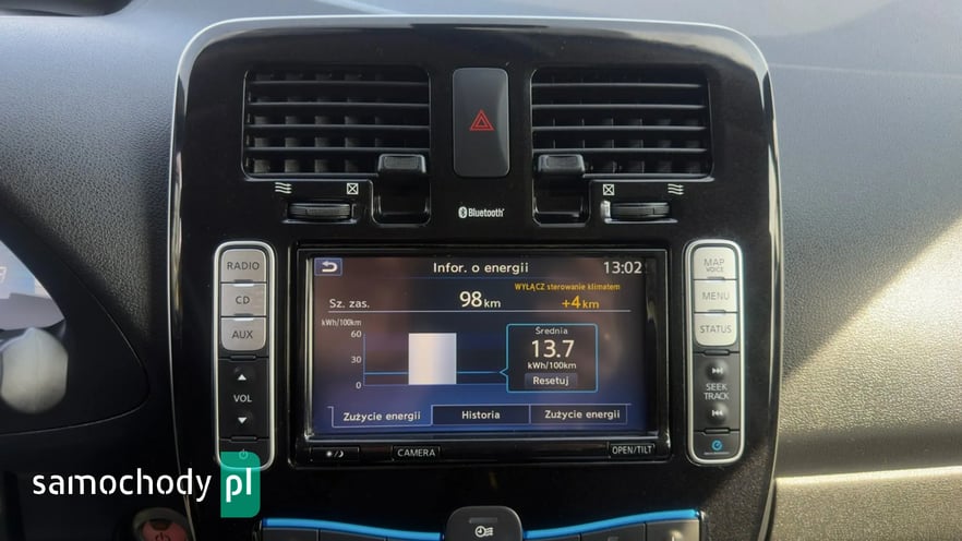 Wersja Nissan Leaf ZE0 30kWh,Klimatronik,10xairbag,radio CD/MP3,nagłośnienie "BOSE"system ECO,2x ładowarka sieciowa,kolorowa nawigacja,komputer,2 kluczyki,AUX,USB,Bluetooth,4xelektryczne szyby,