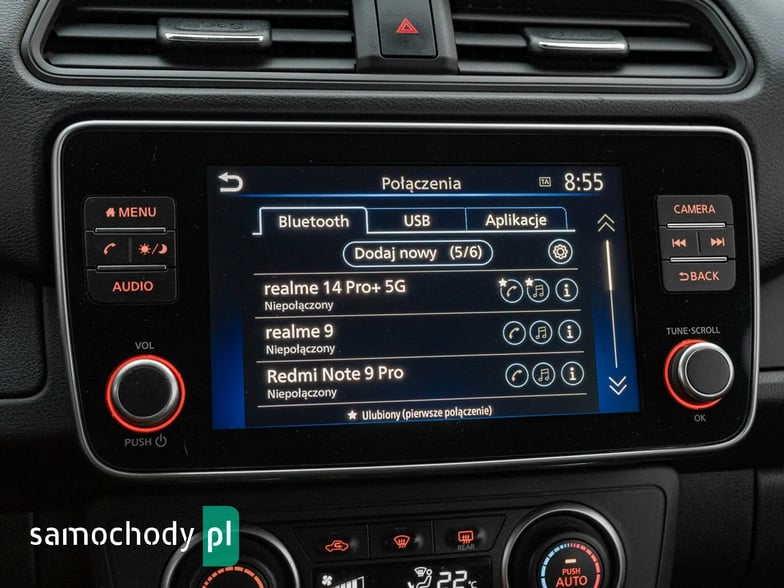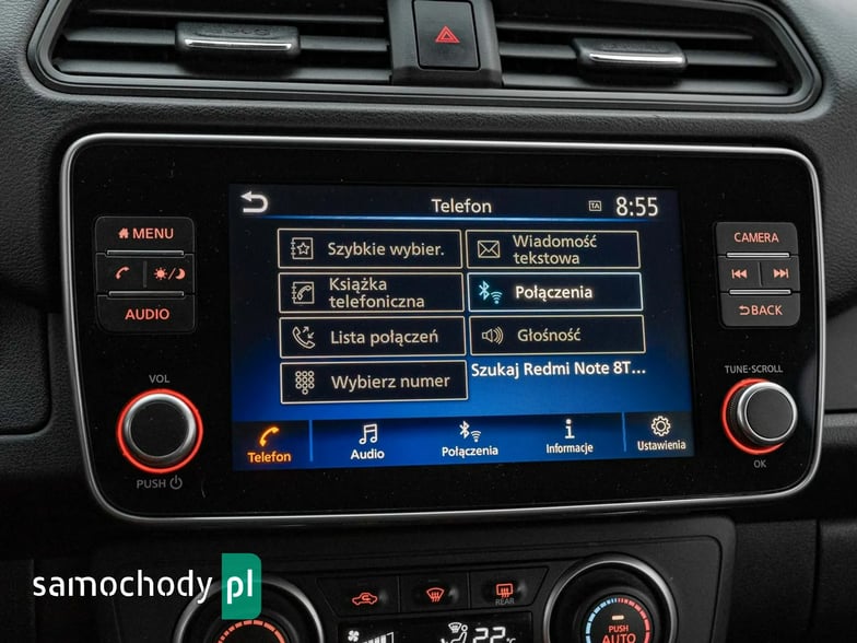 - System nawigacji NissanConnect z 8 cal. ekranem dot., Apple CarPlay, Android Auto i kamerą cofania