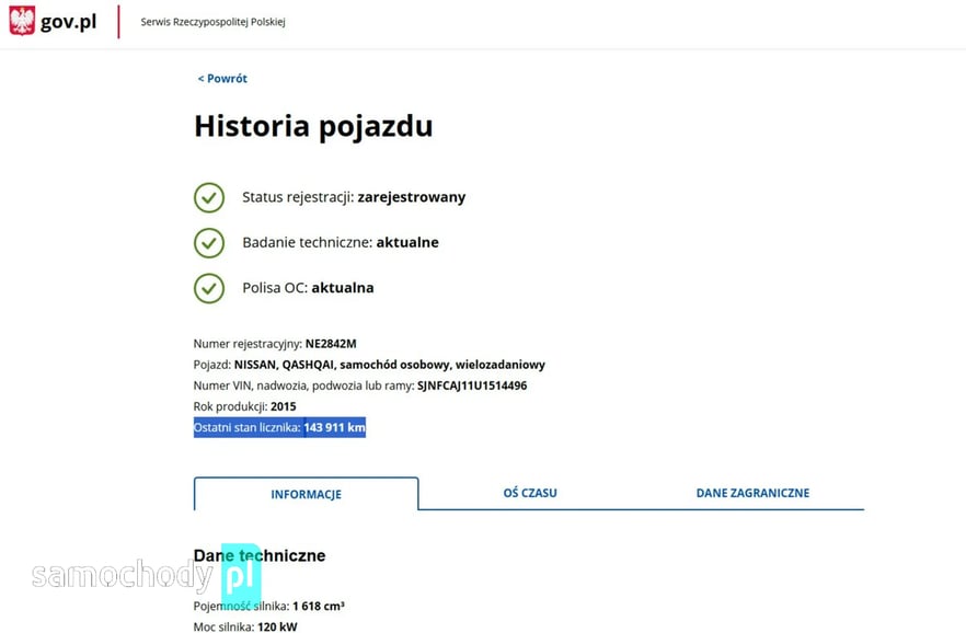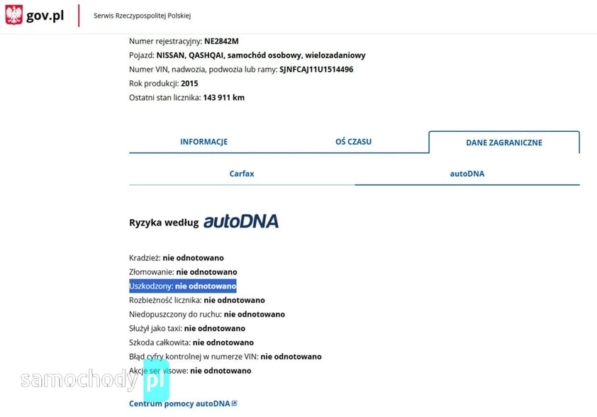 PONIŻEJ PODAJE DANE NIEZBĘDNE DO DARMOWEJ WERYFIKACJI HISTORII PREZENTOWANEGO AUTA NA STRONIE MINISTERSTWA TRANSPORTU