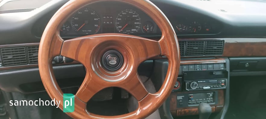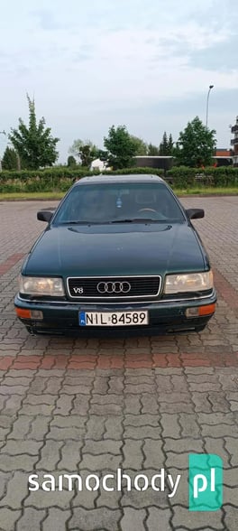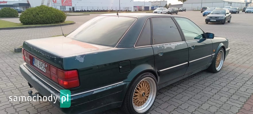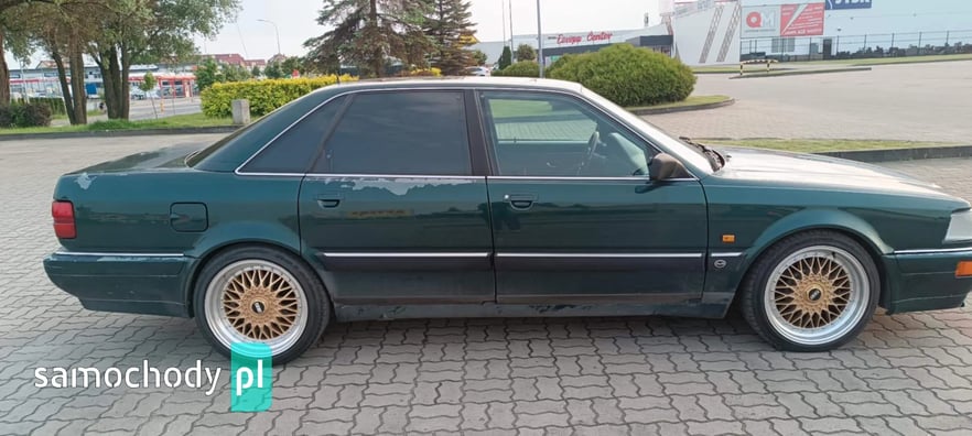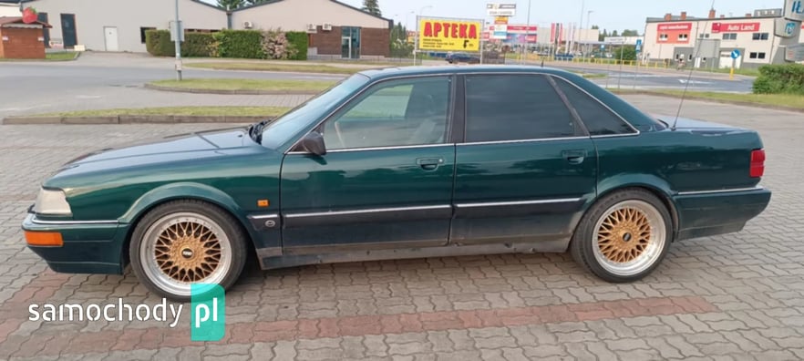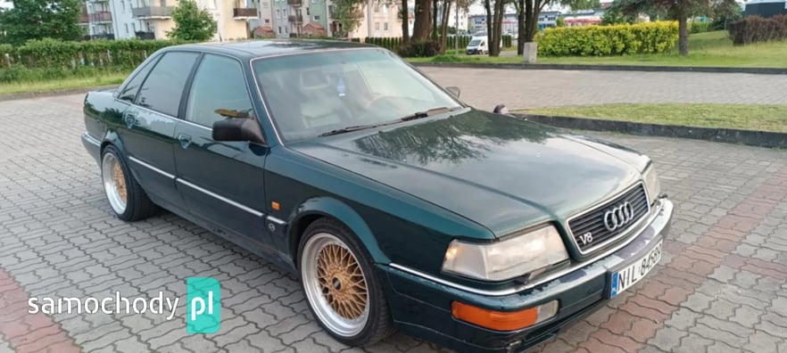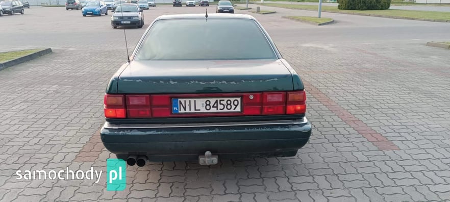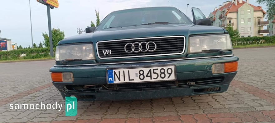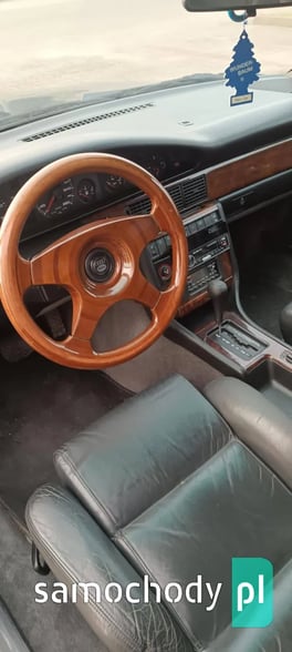 Sprzedam AUDI V8 D11 z 1991 roku z silnikiem 3.6 benzyna oraz automatyczną skrzynią biegów. Auto posiadam od prawie dwóch lat i użytkuję je na co dzień. Auto sprawne ale z pewnymi usterkami do naprawy. Z auta schodzi lakier bezbarwny co widać na zdjęciach, przedni zderzak połamany, otarcie na tylnym zderzaku od strony pasażera. Auto wyposażone w ABS, klimatyzację, podgrzewane fotele przednie oraz tylne, szyberdach, elektrycznie sterowane szyby z przodu i z tyłu, elektrycznie regulowane lusterka boczne, komputer pokładowy, spryskiwacze reflektorów, felgi 18 calowe na letnich oponach oraz felgi 16 calowe na zimowych oponach. Auto sprzedaję z oryginalną kierownicą, ta na zdjęciach nie jest sprzedawana z autem. Dla zainteresowanych mogę podesłać więcej zdjęć.