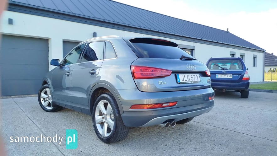 Posiadamy na sprzedaż Audi Q3 z 2015 roku z silnikiem 2.0 TDI o mocy 150KM i manualną skrzynią biegów. Auto posiada oryginalny przebieg 175000km. Auto zostało sprowadzone ze Szwecji. Wnętrze auta w bardzo dobrym stanie. Praktycznie brak oznak zużycia. Silnik oraz zawieszenie w pełni sprawne. Karoseria bez korozji w stanie bardzo dobrym z kilkoma oznakami użytkowania auta. Auto po wymianie tarcz oraz klocków na osi przedniej oraz tylnej i po serwisie klimatyzacji. Auto posiada jeden komplet kół na aluminiowych 18-sto calowych felgach z oponami Kumho. Auto spełnia normę EURO6. Pojazd był serwisowany w Audi do przebiegu 143000km.
